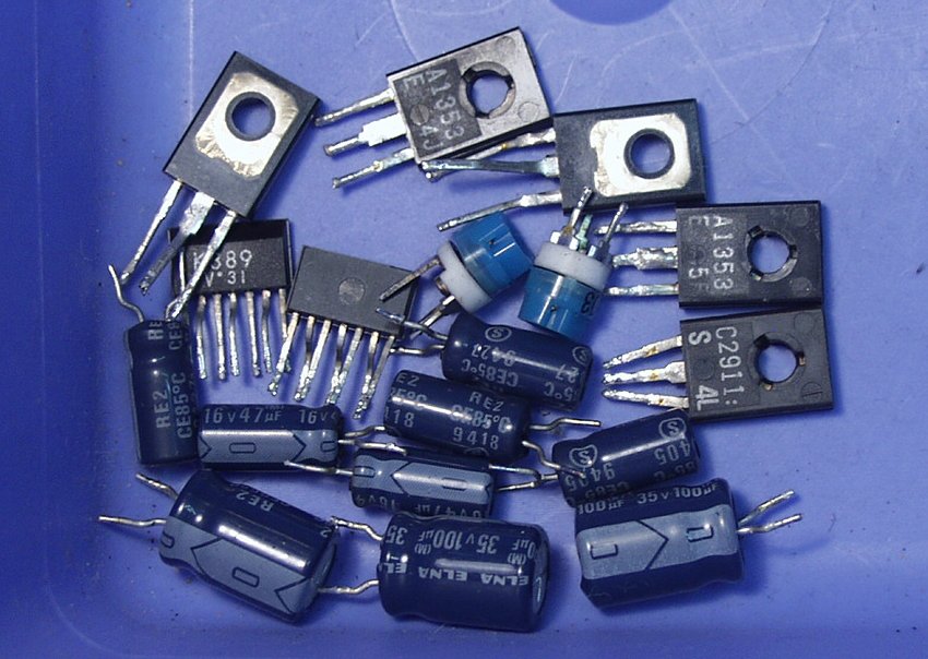 | C−1B. 修理後 R側AMP 半固定VR1個、電解コンデンサー3個、TR(トランジスター)4個交換 |