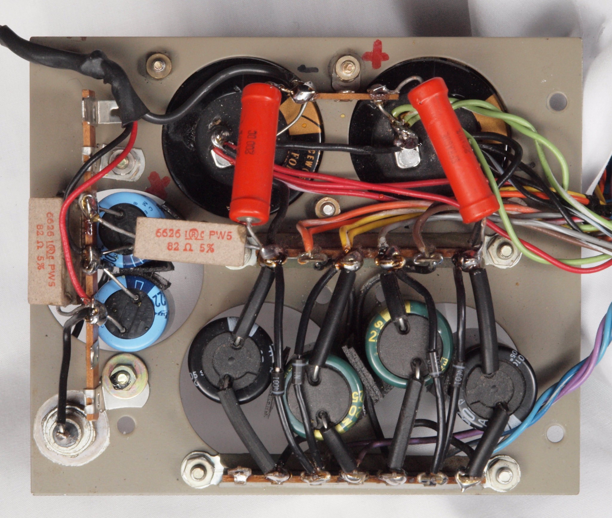 C52. 修理後 電源部。 終段電源用 4700μ/63WV×4個から10000μ/63WV×2個に交換。
