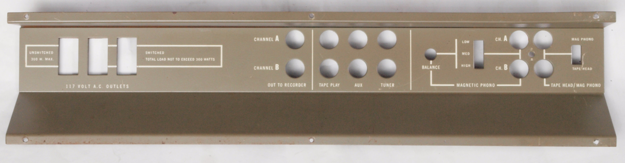 | P. 上下パネル、前後パネル、RCA端子パネルの塗装。 画像をクリックすると、大きく(横幅2050ドット)表示されます。 P11. 修理(塗装)前 前パネル。 |