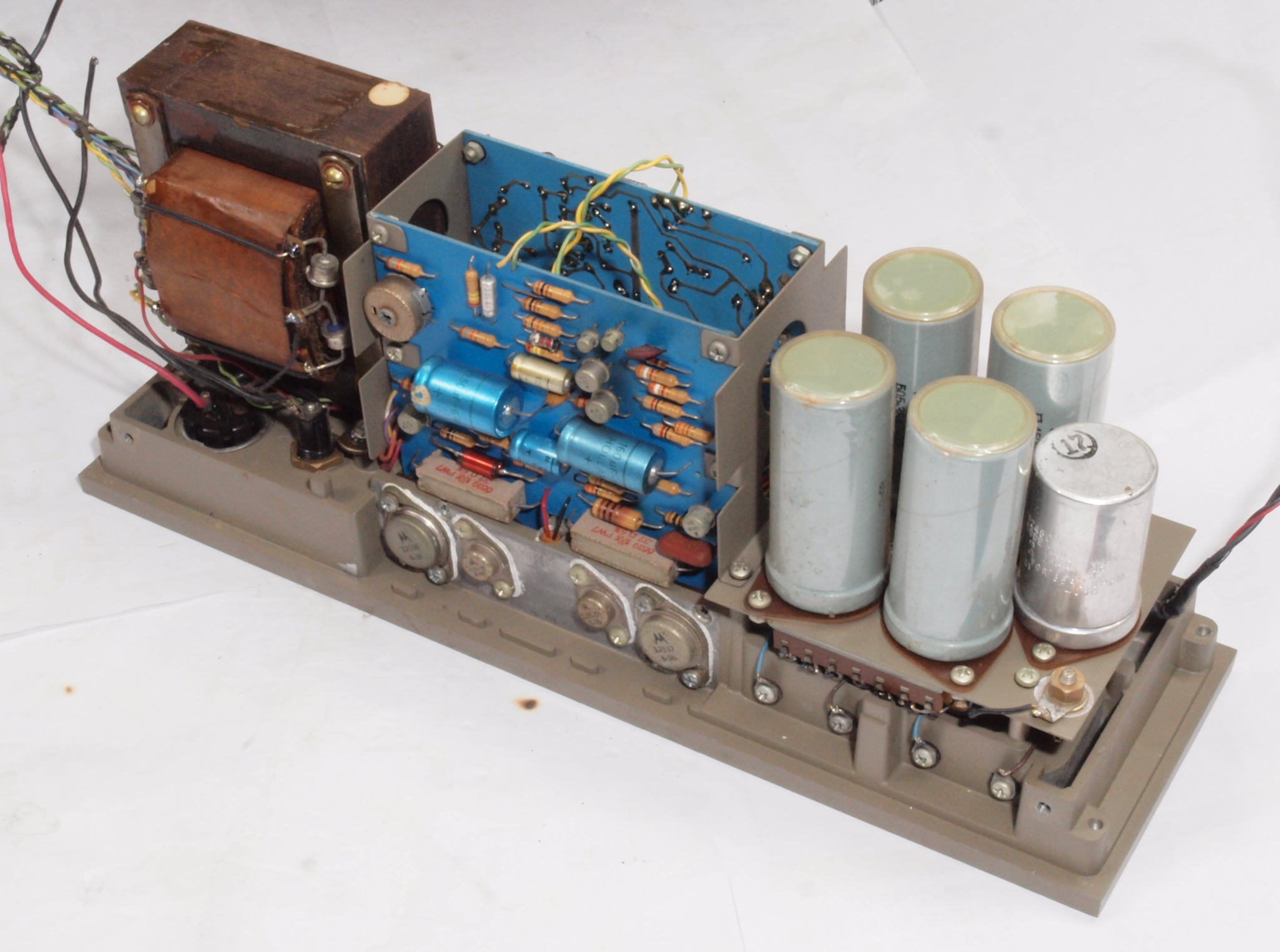 C3. 修理中 放熱器を外したメインアンプ部+電源部。