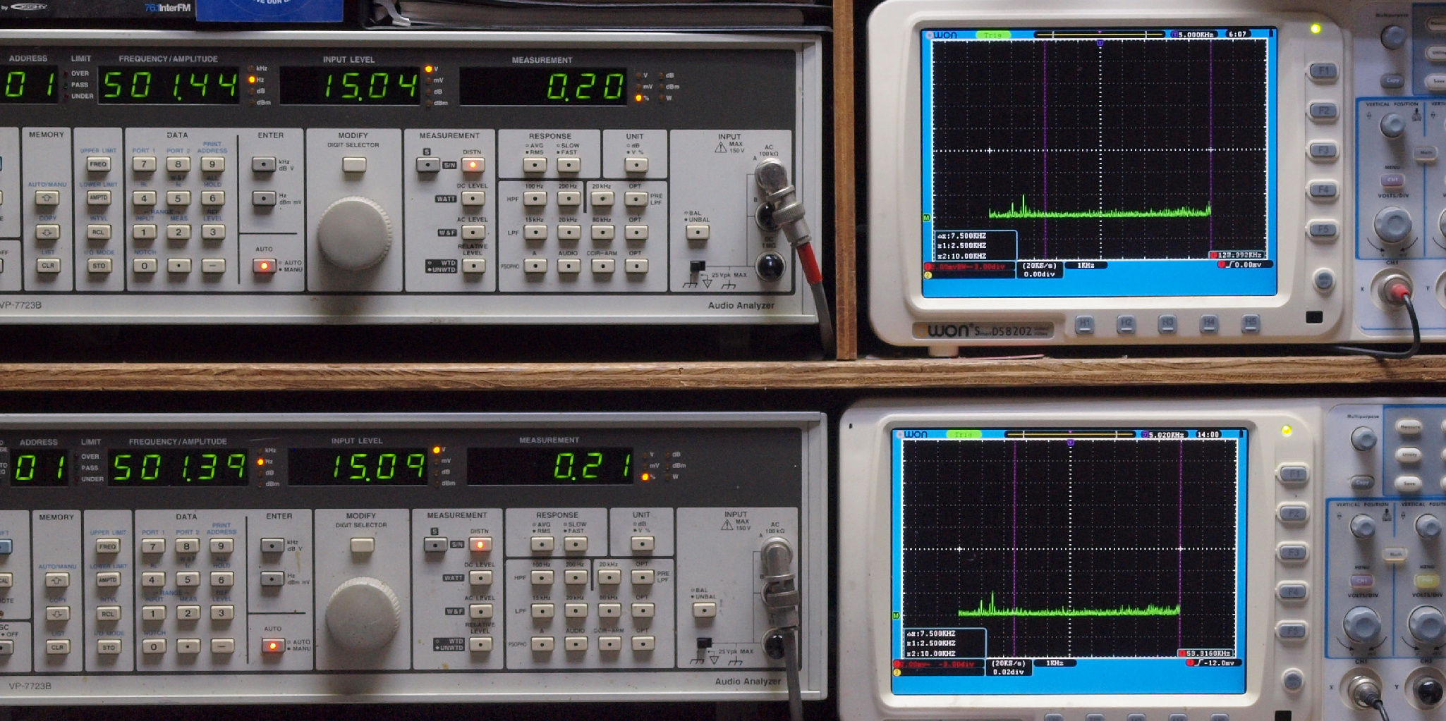 よって、ダイアル設定出力レベルより低くなります。測定機器の仕様や整備の様子はこちら、「VP−7723B」「VP−7201A」。 FFT画面の見方はこちら。