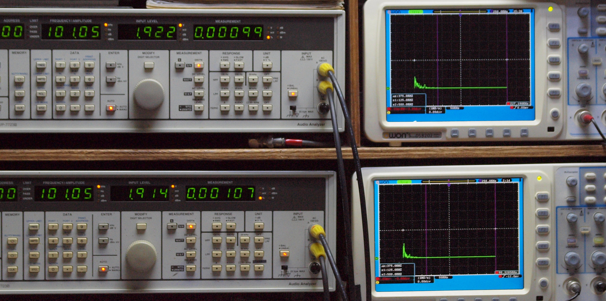 よって、ダイアル設定出力レベルより低くなります。測定機器の仕様や整備の様子はこちら、「VP−7723B」「VP−7201A」。 FFT画面の見方はこちら。