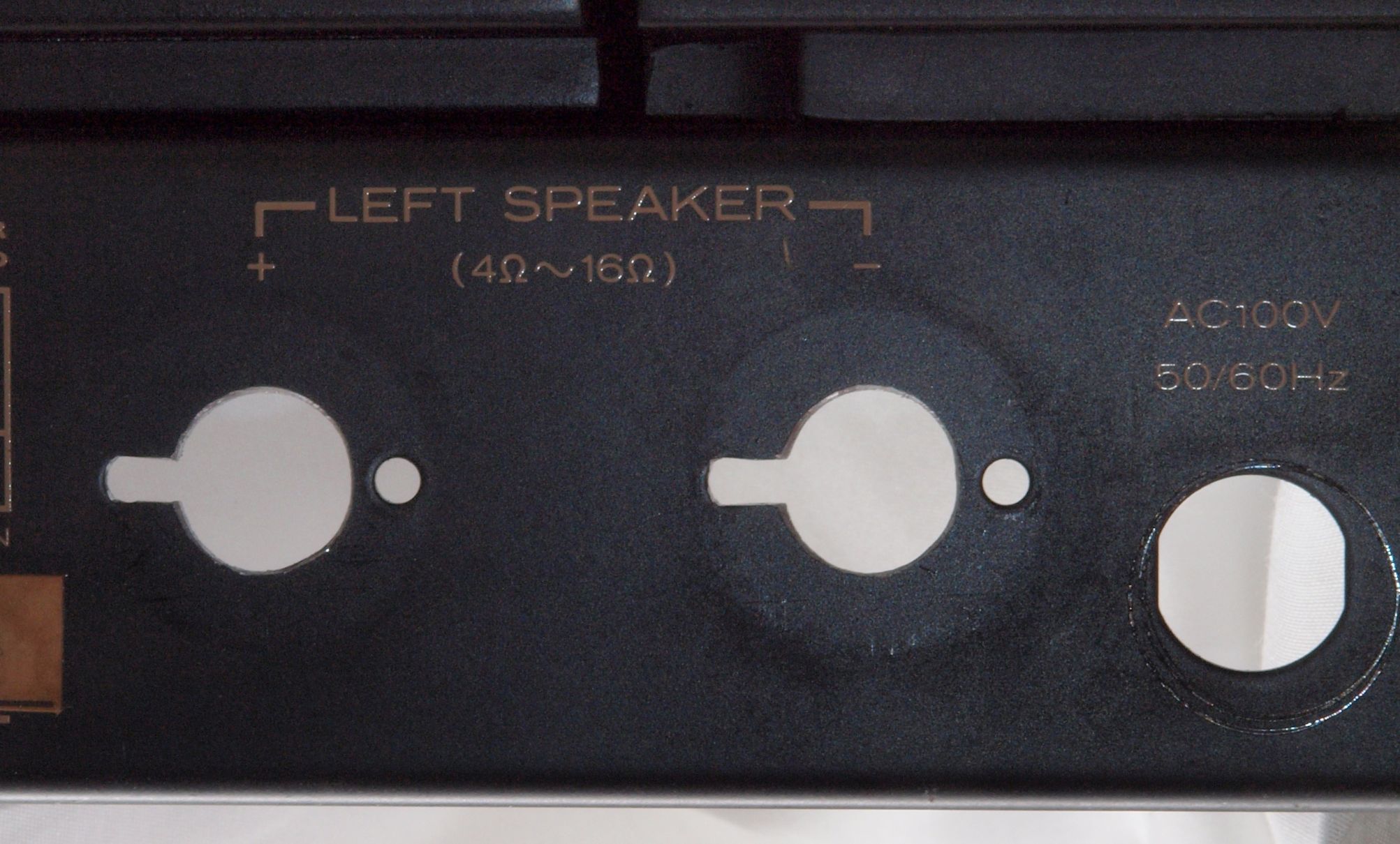 | 注意 このAMPはアースラインが浮いています。 AMPのシャーシにSPの線(アース側)や入力のRCAプラグのアース側も接続してはいけません。 RL−SPのアース線も接続(共通)してもいけません。 本機の様に、電源コードがシールド(アース)付きの場合、シールド(アース)は本体かプラグのどちらかで外す事。 又、DC(directconnection)入力が可能ですが、絶対に使用しないこと=ここ参照 |