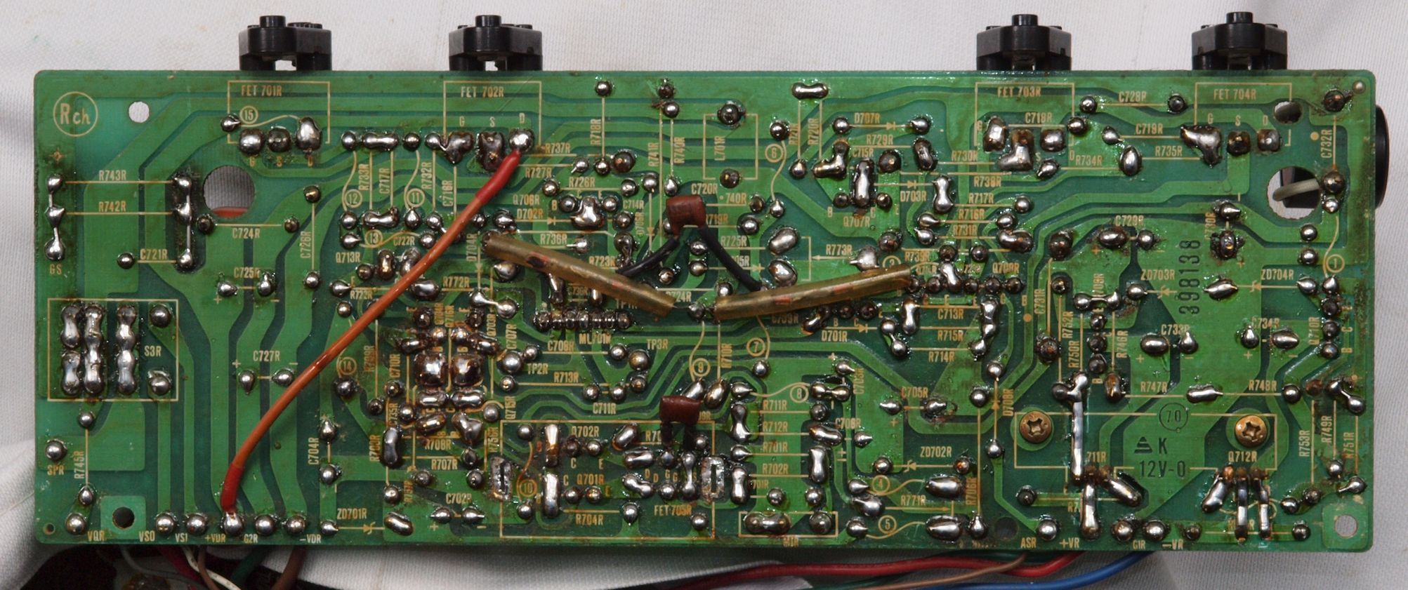 | C15. 修理(半田補正)後 R側ドライブ基板裏 半田を全部やり直す。 普通はこれで完成。 |
