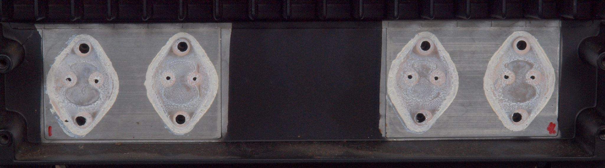 | A502. 点検中 交換されている電源コード取り付け裏。 治具がないのか、接着固定。 |