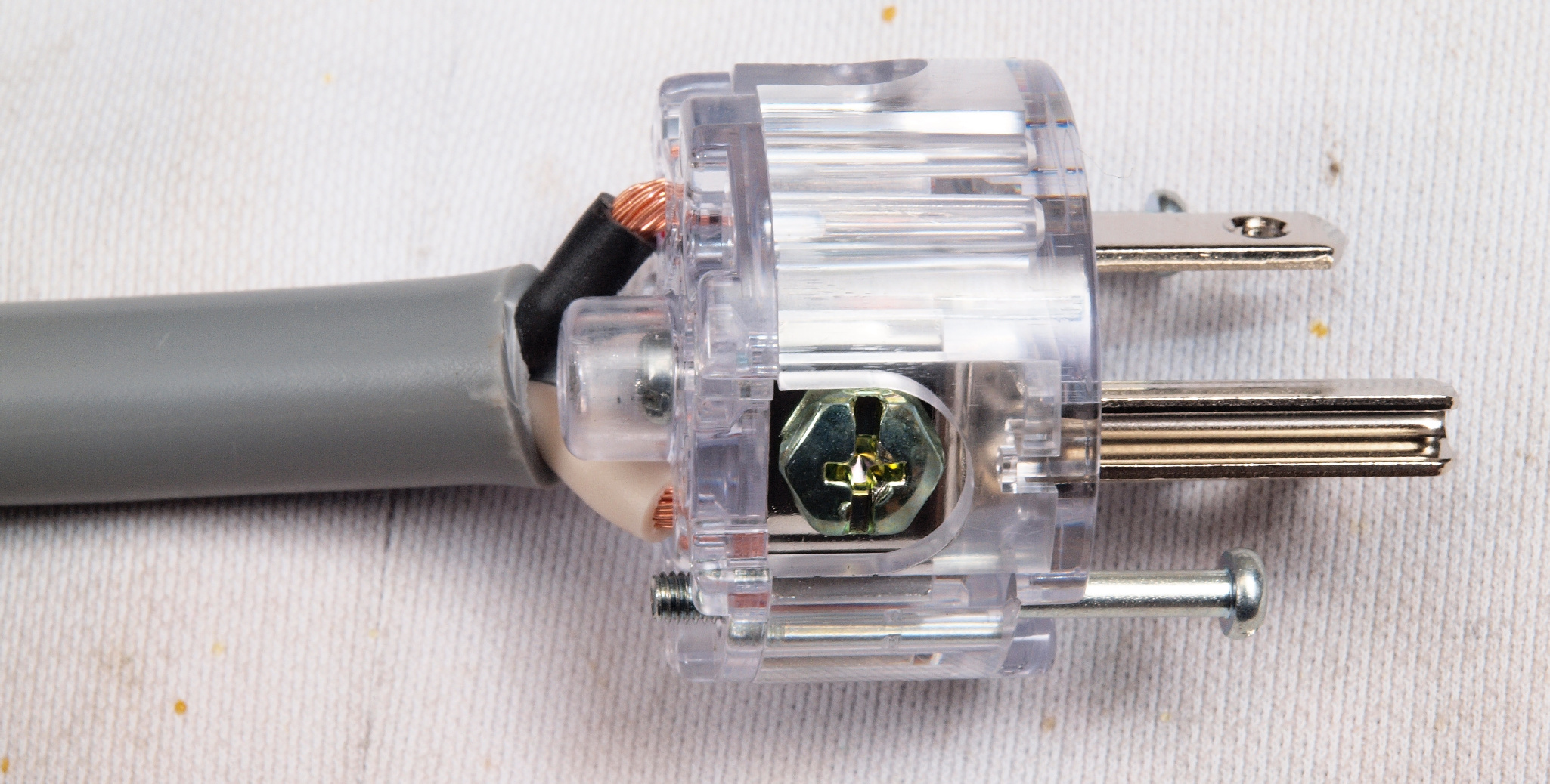 | C9C. 完成 3Pプラグにケーブル取り付。 被覆部も十分に差し込む、反対側。 |