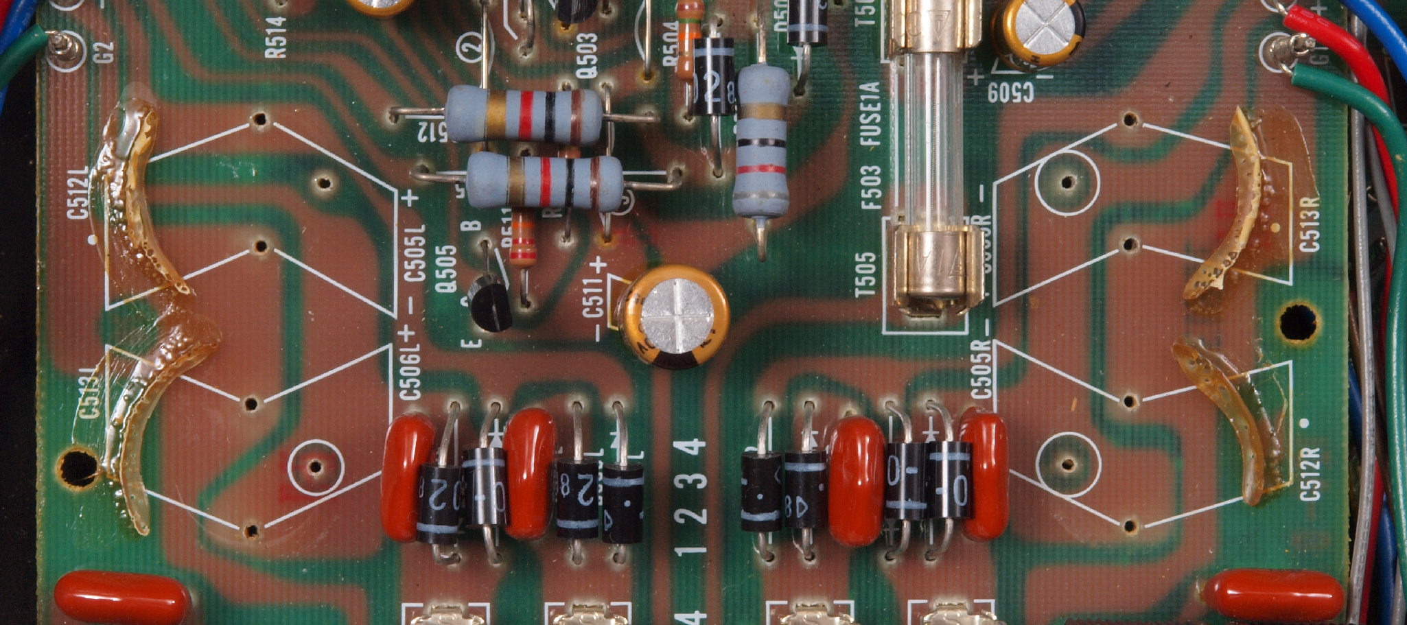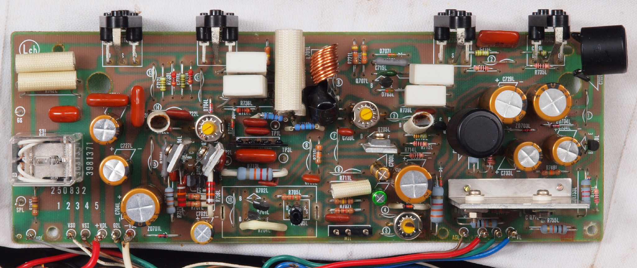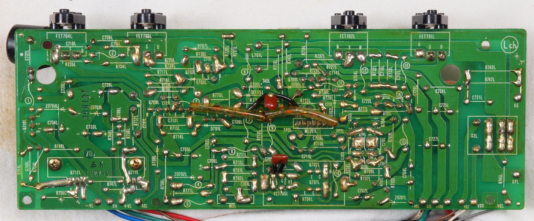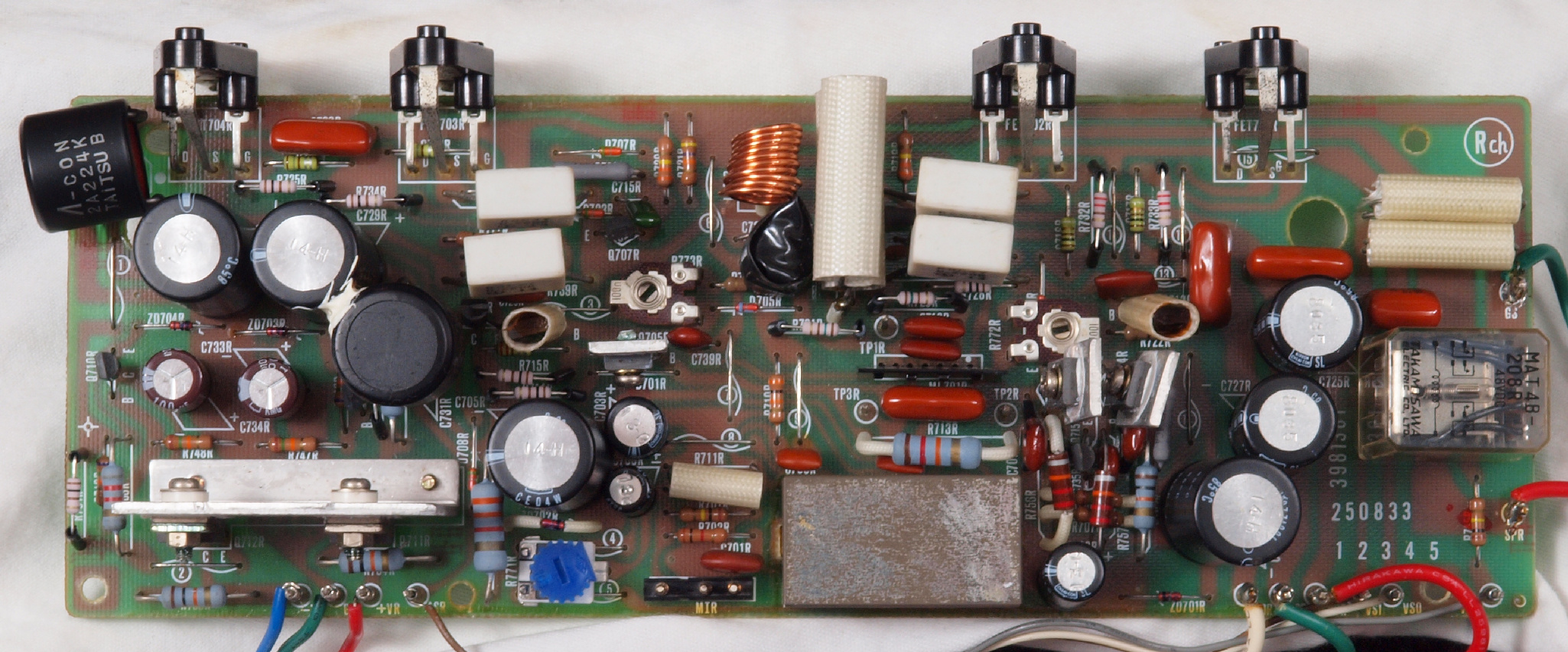 | C43. 修理後 RLモジュール裏。 TR(トランジスター)交換後軽くラッカーを吹きました。 |
