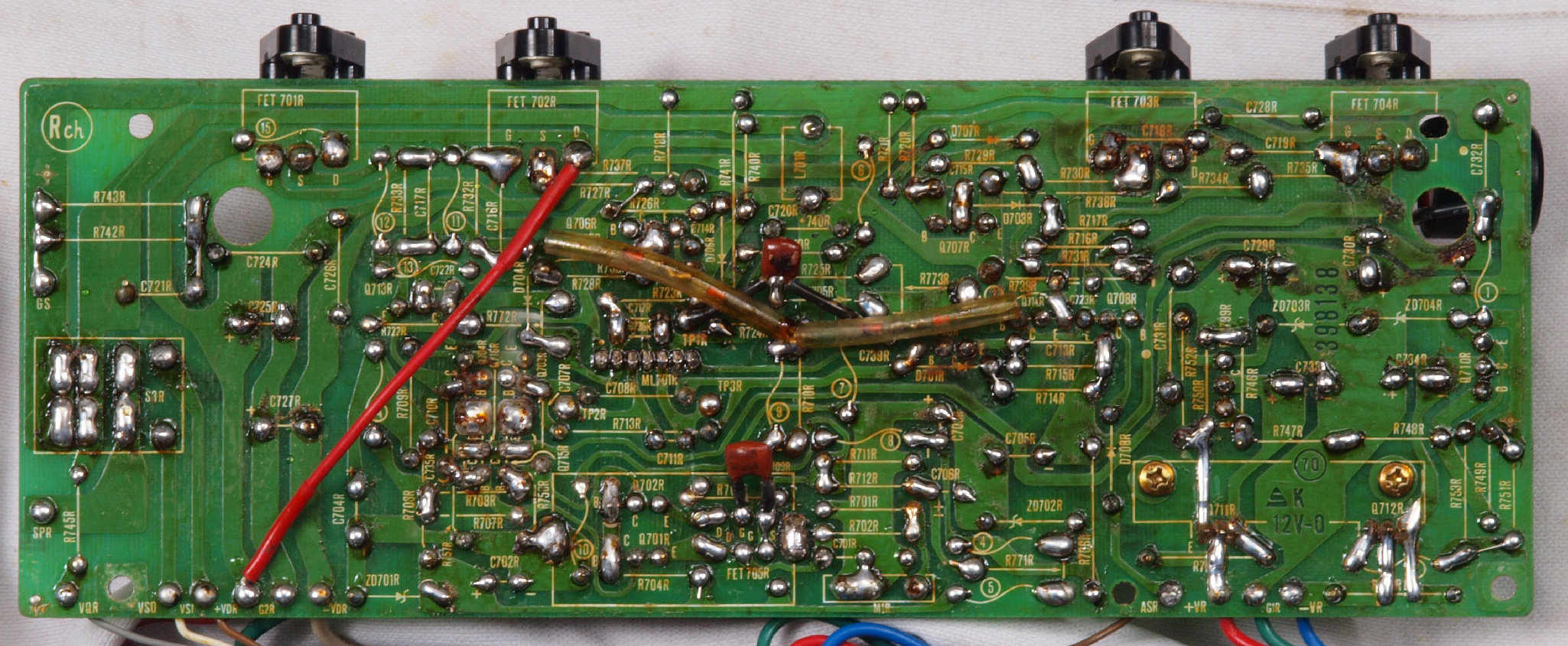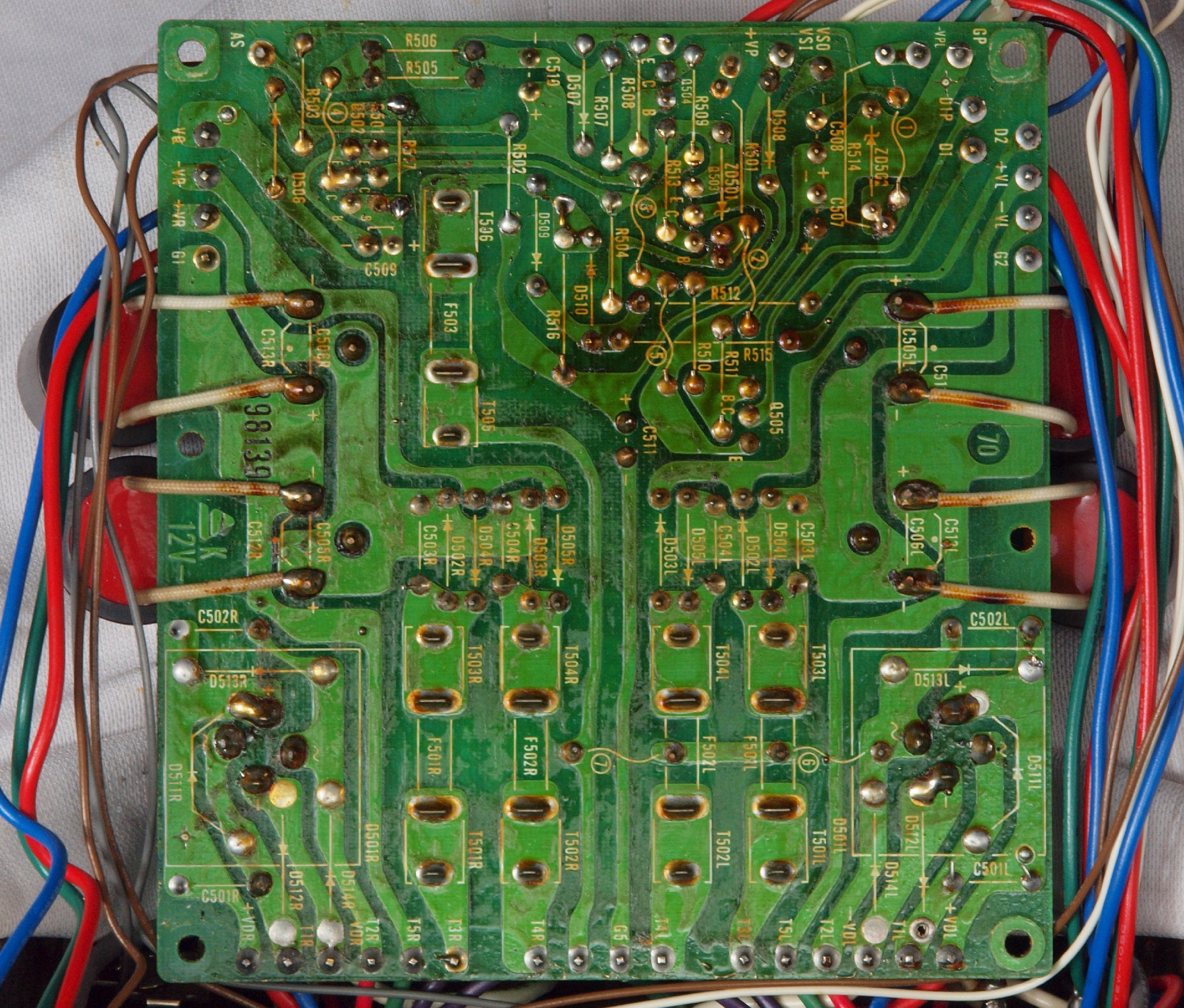| C. 修理状況。 画像をクリックすると、大きく(横幅2050ドット)表示されます。 C11. 修理前 R側ドライブ基板 |