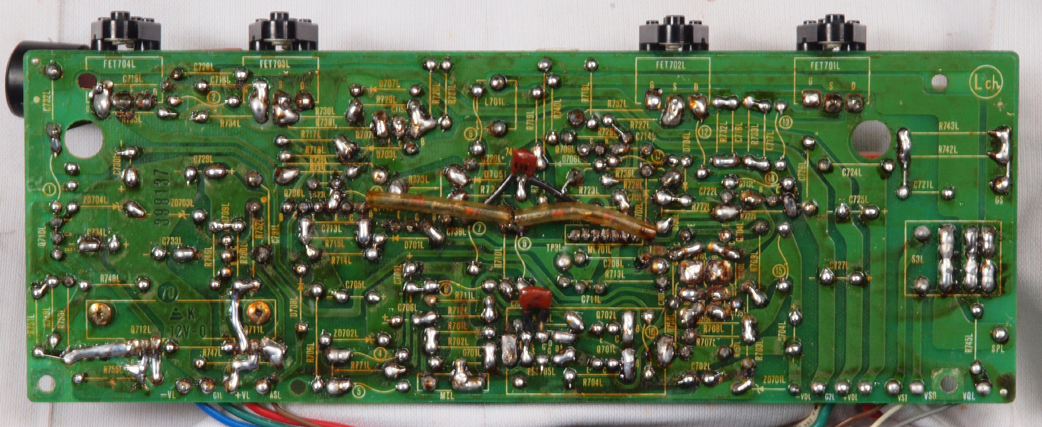 | C15. 修理(半田補正)後 R側ドライブ基板裏 半田を全部やり直す。 普通はこれで完成。 |