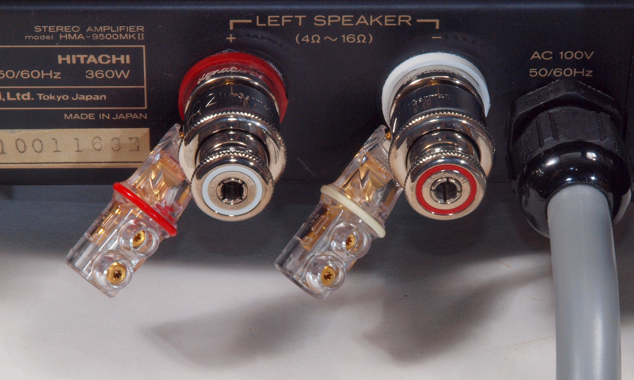 | CD5. SP端子WBT−0702PLには サンドイッチスペードが似合います WBT 0681Cuを挿した所。 |