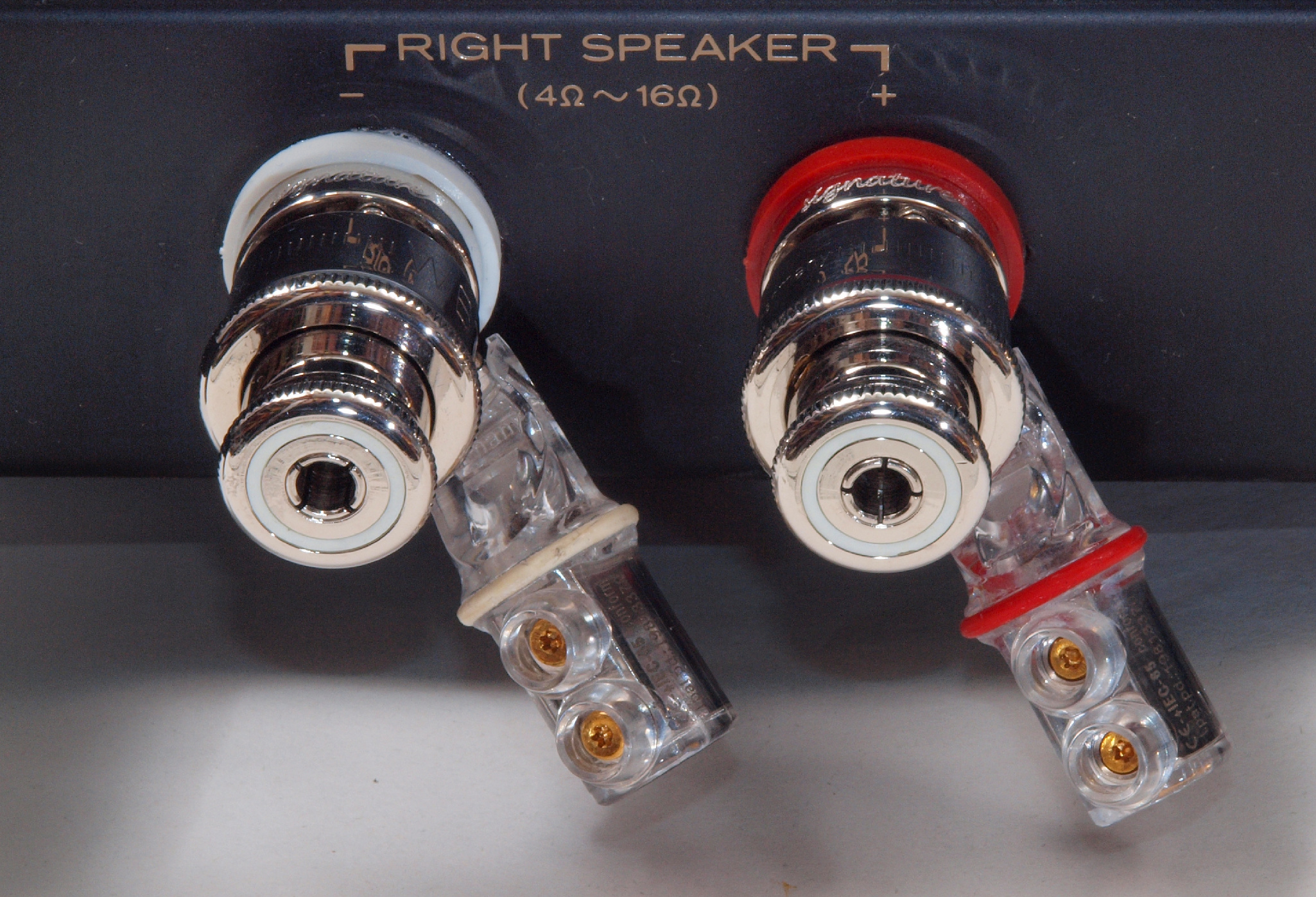 | 注意 このAMPはアースラインが浮いています。 AMPのシャーシにSPの線(アース側)やプリAMPのアースもも接続してはいけません。 RL−SPのアース線も接続(共通)してもいけません、+−の撚りのあるのも使用出来ません。 又、DC(directconnection)入力が可能ですが、絶対に使用しないこと=ここ参照 |