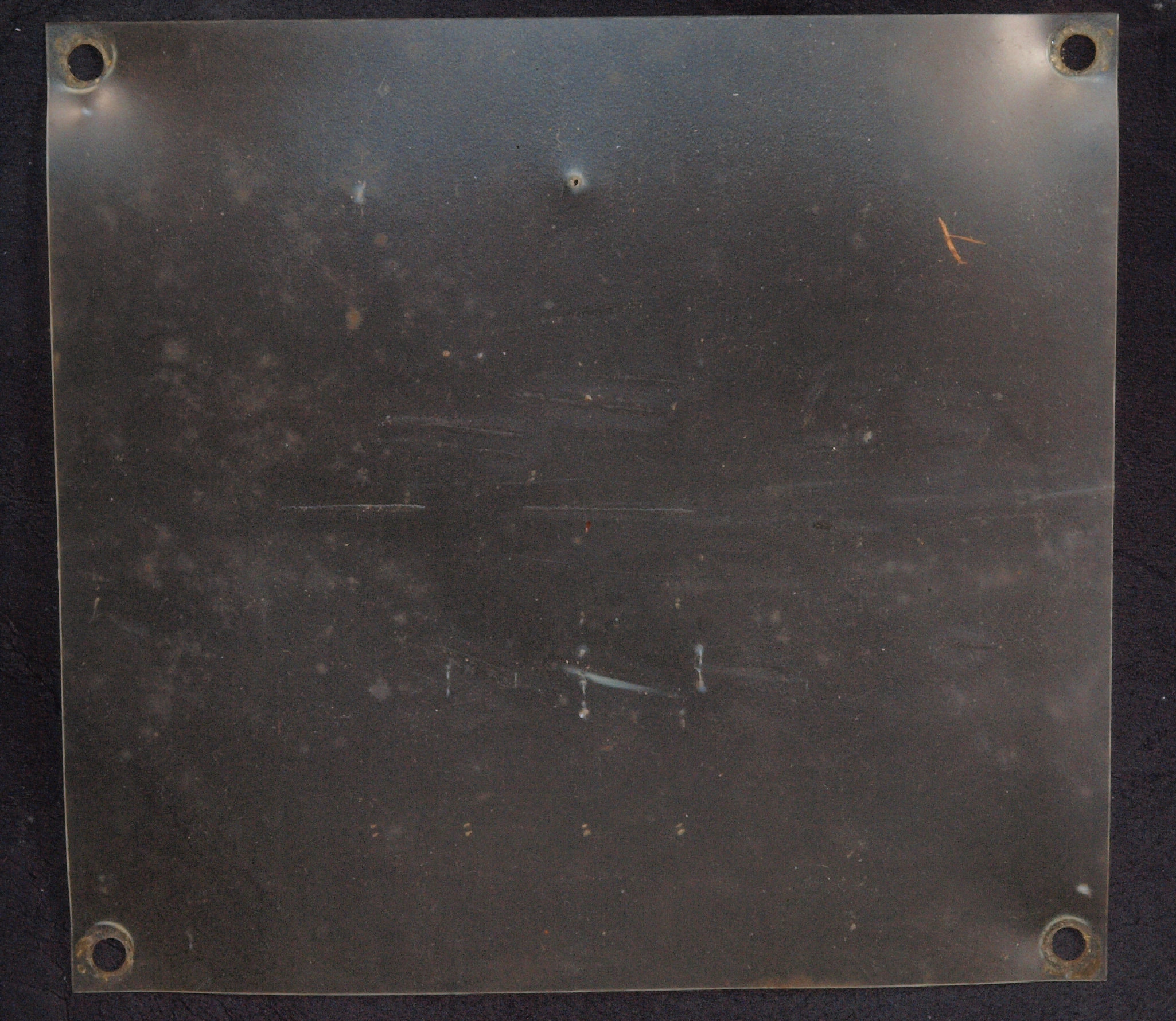 | C58. 修理中 絶縁シート。 上真ん中に電解コンデンサーの足の穴が空いている。 |
