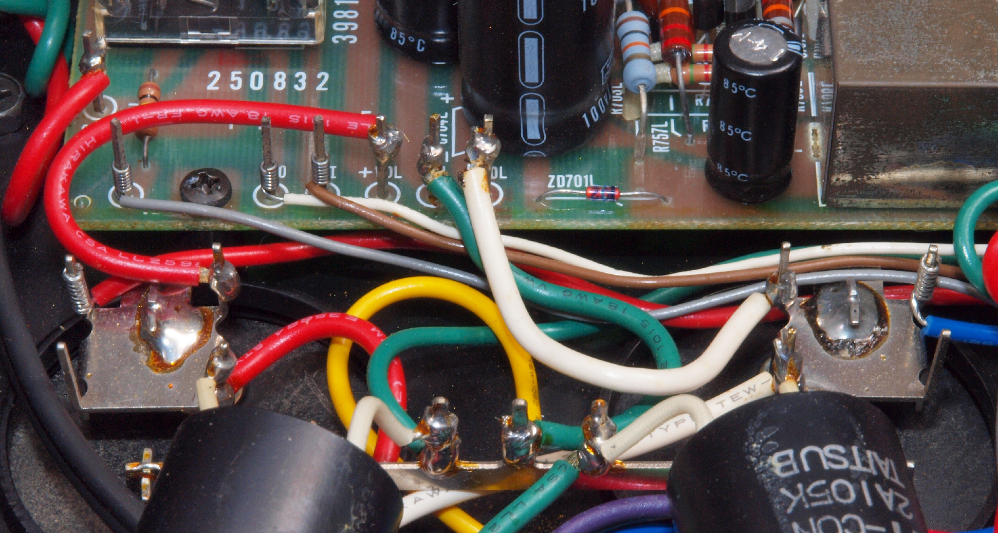 | CA32. 修理中 L側ドライブ基板へのラッピング線。 ヒゲが出ている! |