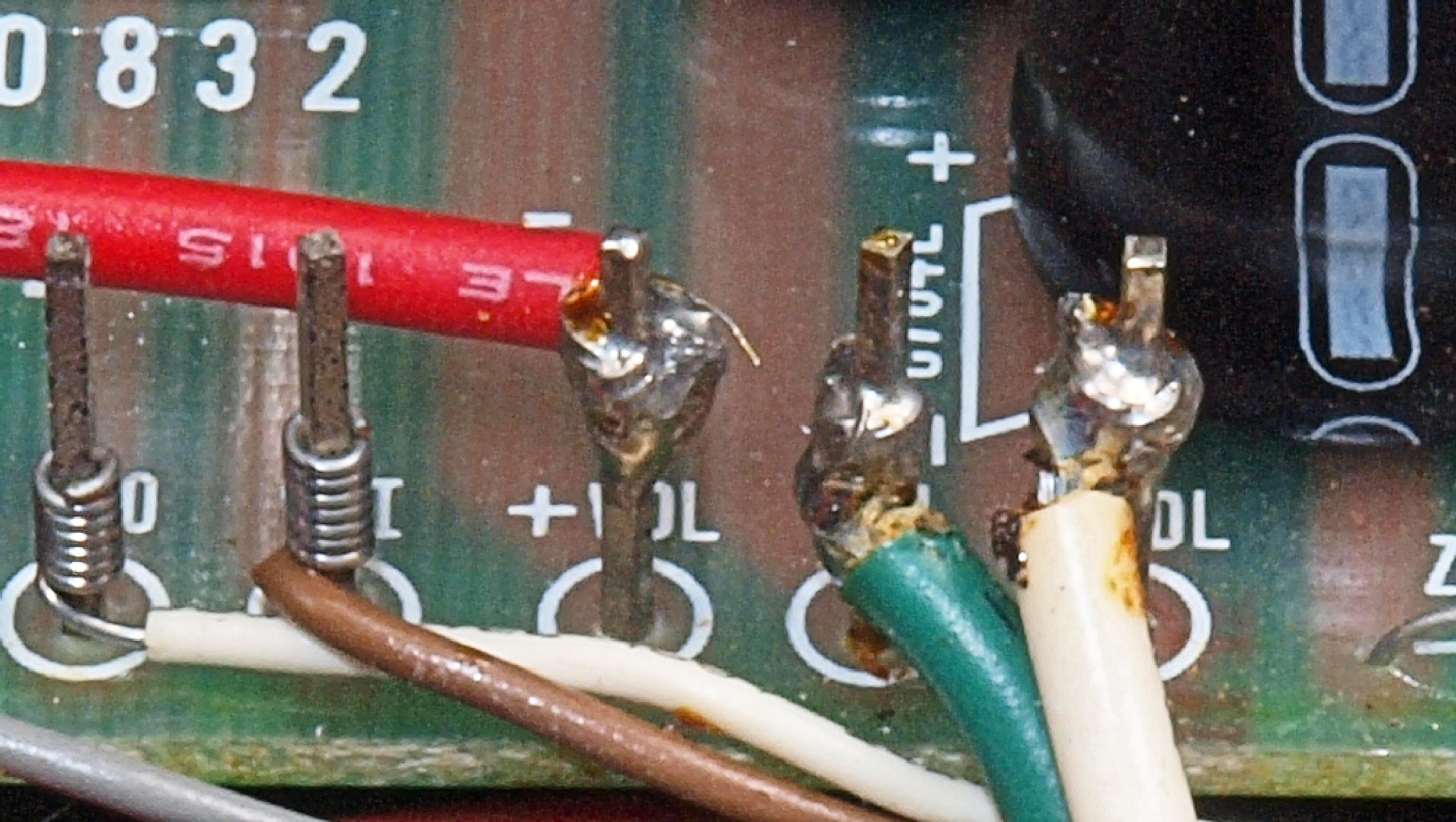 | CA6. 修理後 R側ドライブ基板−電源基板へのラッピング線に半田を浸み込ませる |