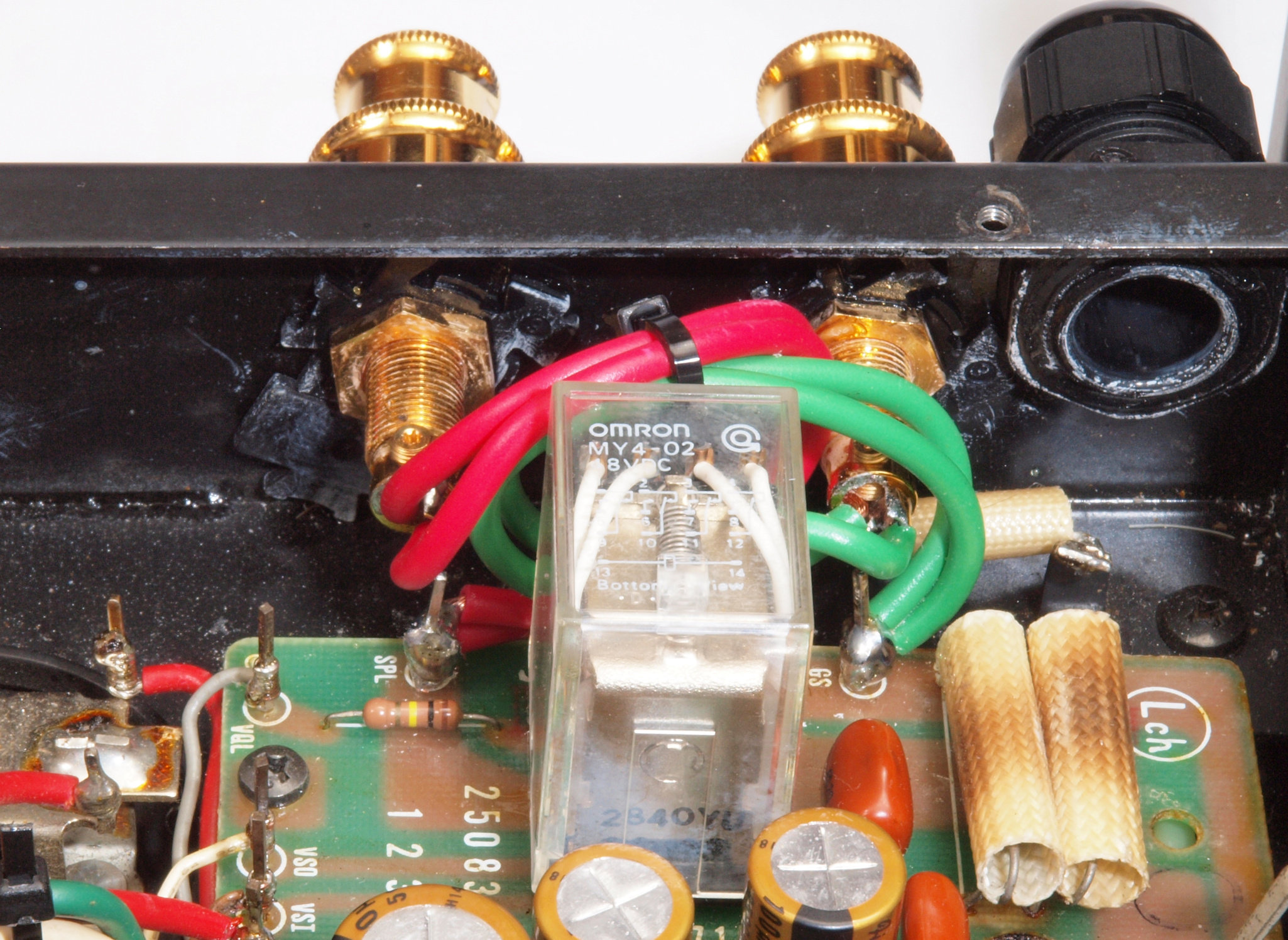 | 注意 このAMPはアースラインが浮いています。 AMPのシャーシにSPの線(アース側)やプリAMPのアースもも接続してはいけません。 RL−SPのアース線も接続(共通)してもいけません、+−の撚りのあるのも使用出来ません。 又、DC(directconnection)入力が可能ですが、絶対に使用しないこと=ここ参照 |