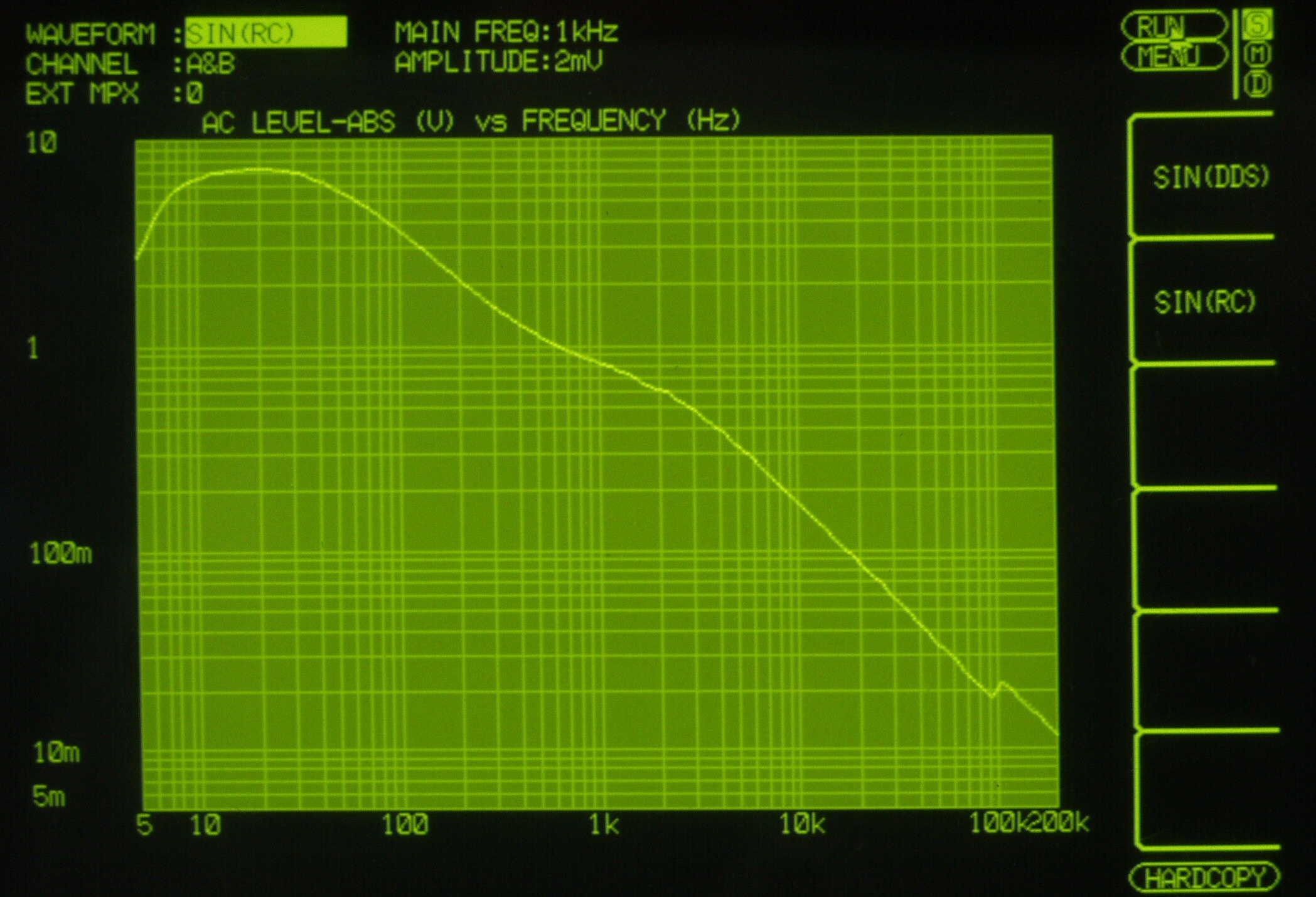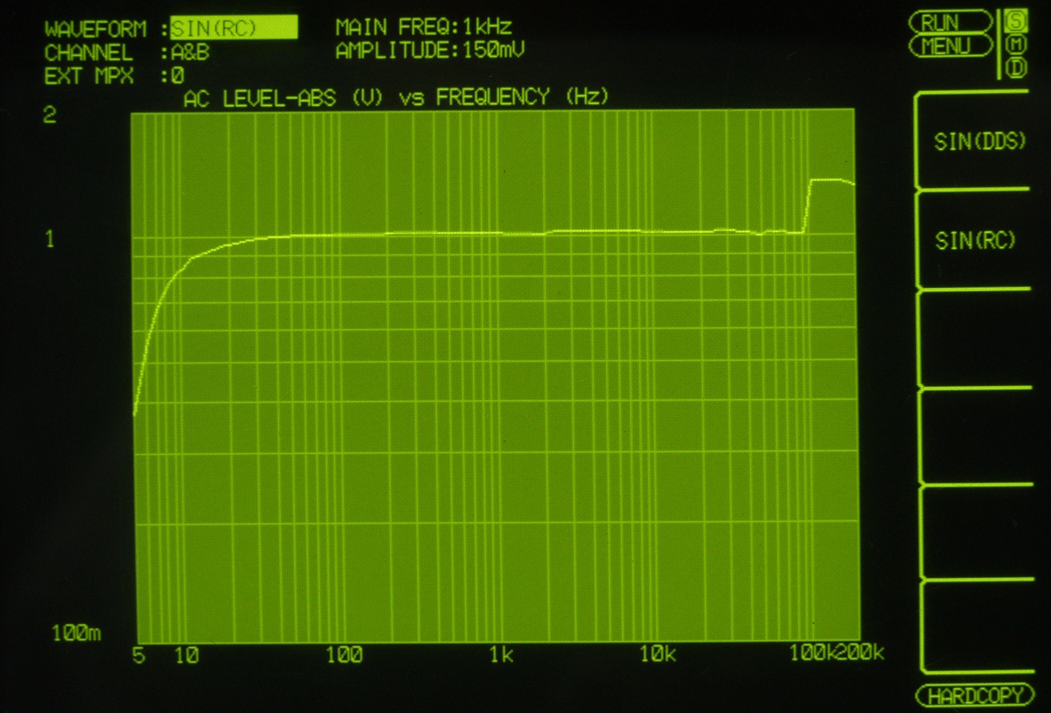 発振器の出力不足なので、MM入力に変更、やっと飽和し始める。