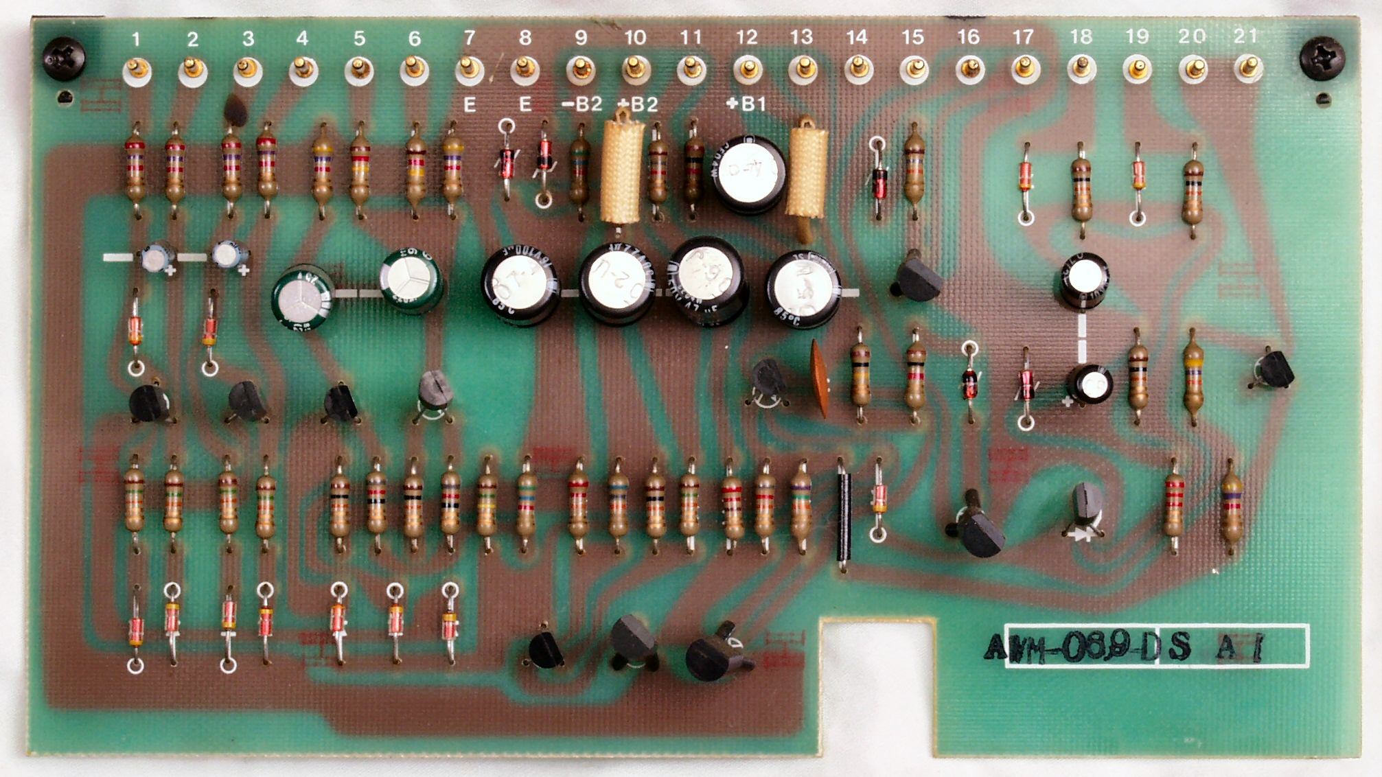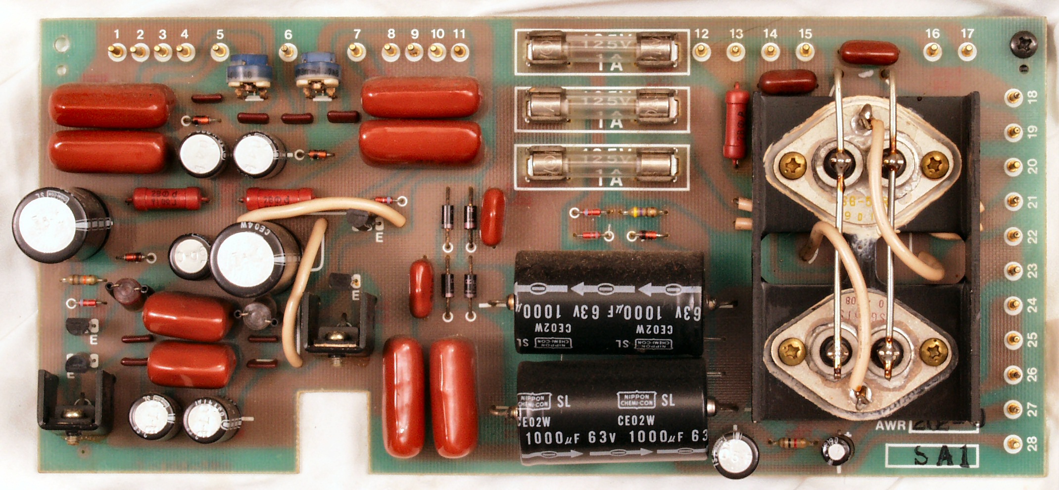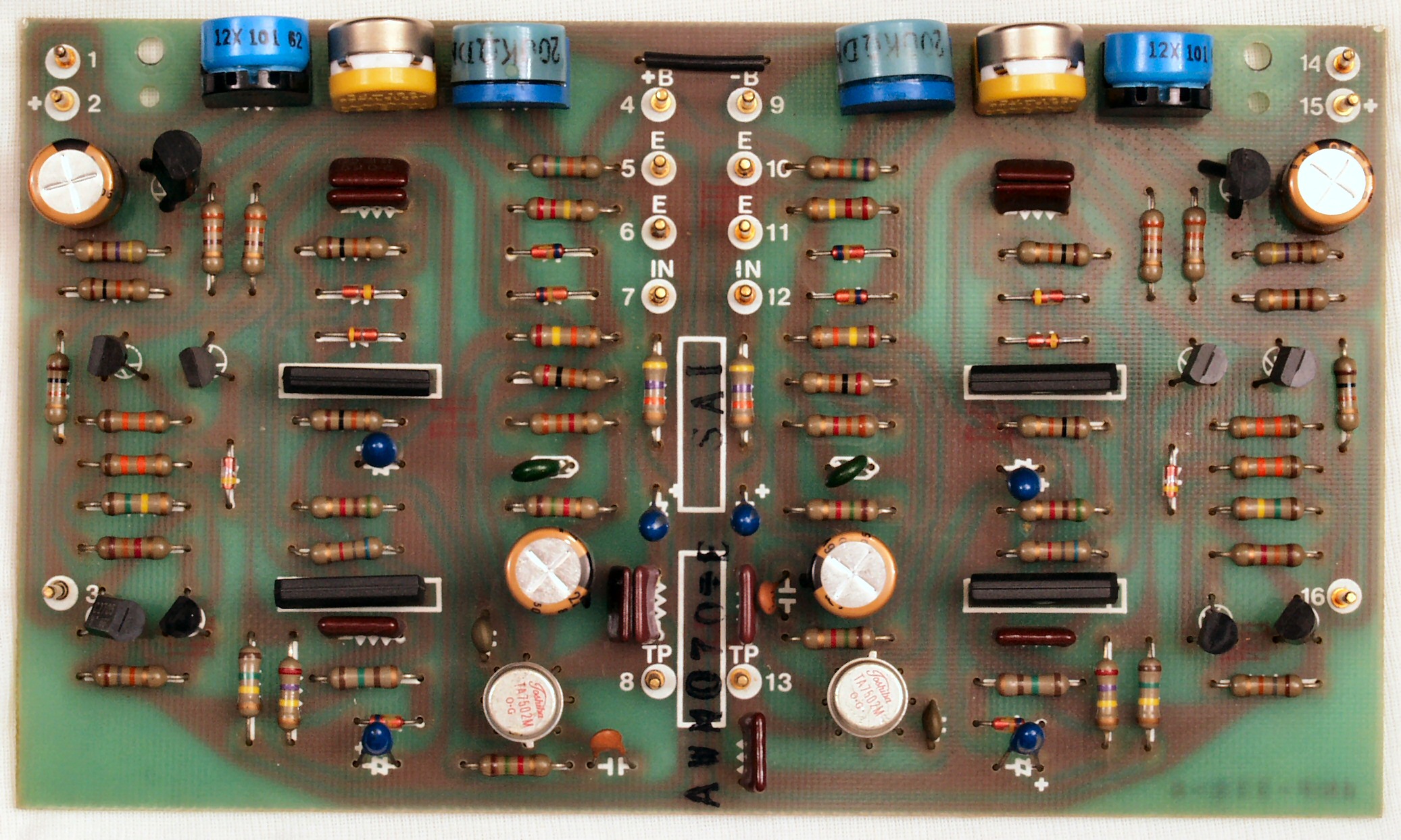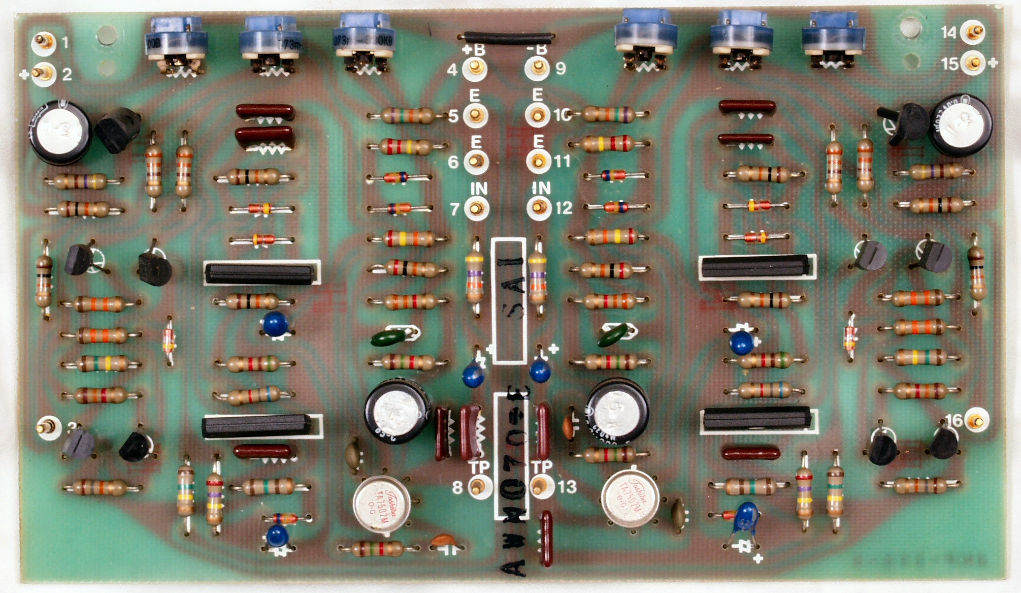 | C12. 修理後 R−AMP基板 バランス・バイアス調整用半固定VR2個、電解コンデンサー4個、フイルムコンデンサー1個交換 | ||||||||||||||||||||||||||||||||||||||||||