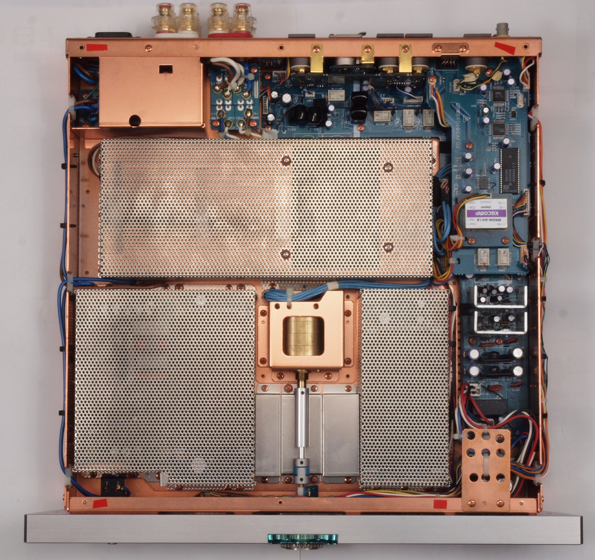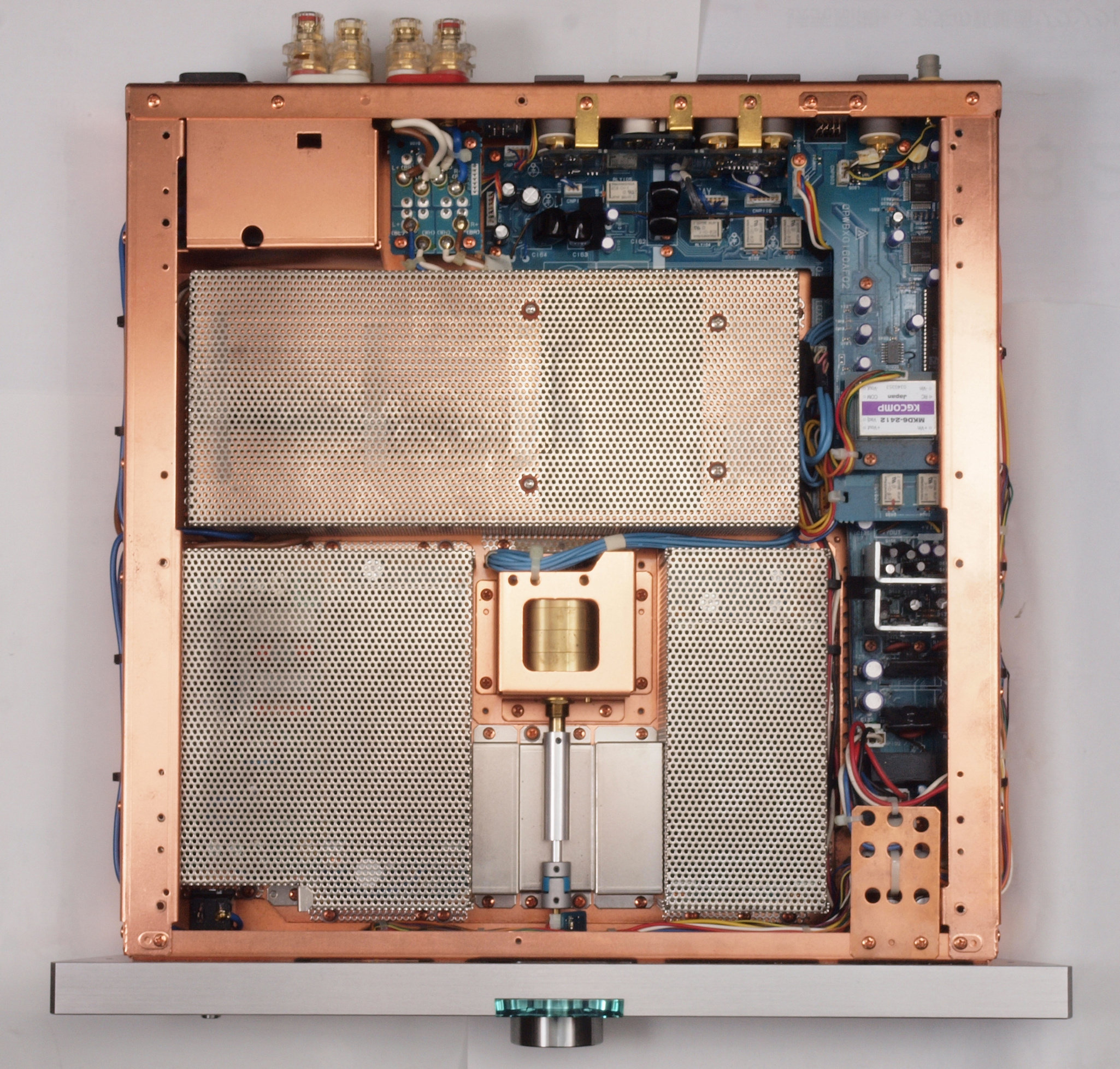 | A17. 点検中 横パネルと上下蓋を取り、上から見る。 メインVRツマミと下足は修理用です。 | ||||||||||||||||||||||||||||||||||