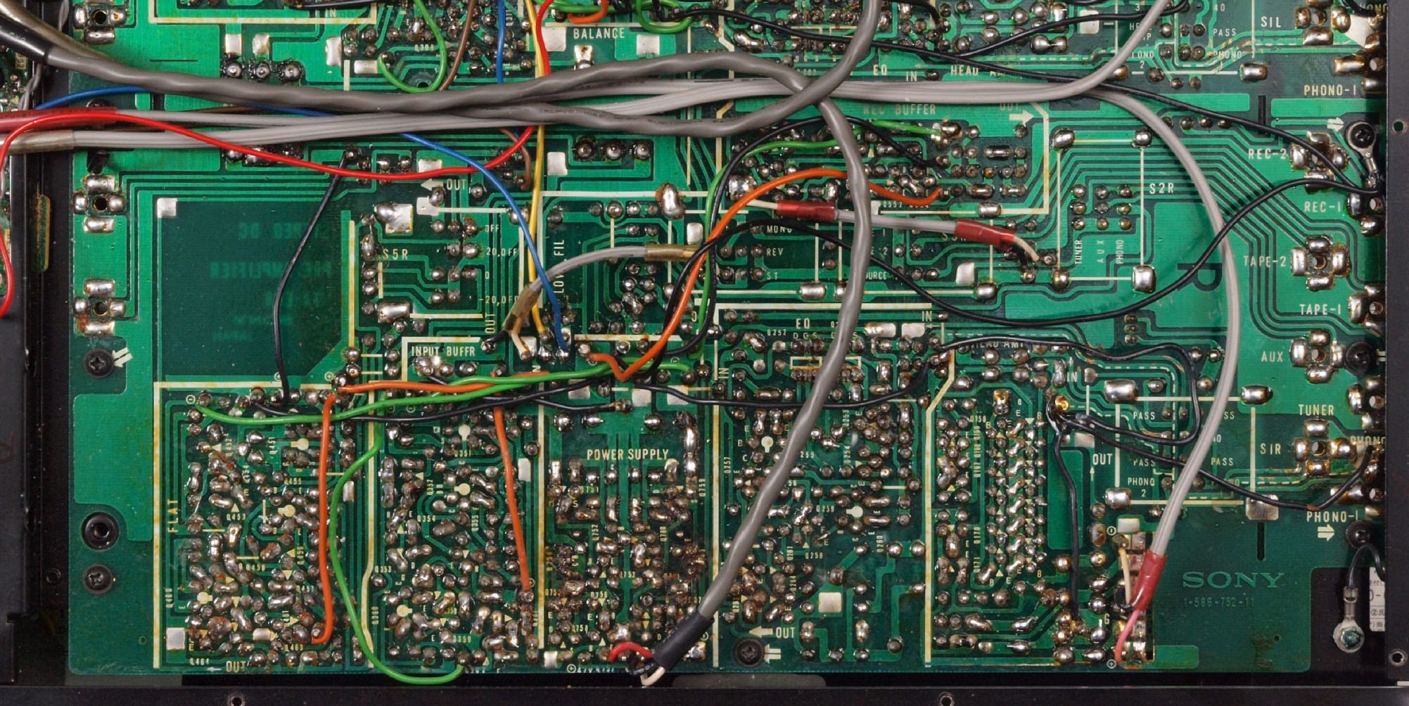 | C75. 修理中 電源基板裏、洗浄後。 見た目は非常に綺麗だが、このままでは腐食する。 | ||||||||||||||||||||||||