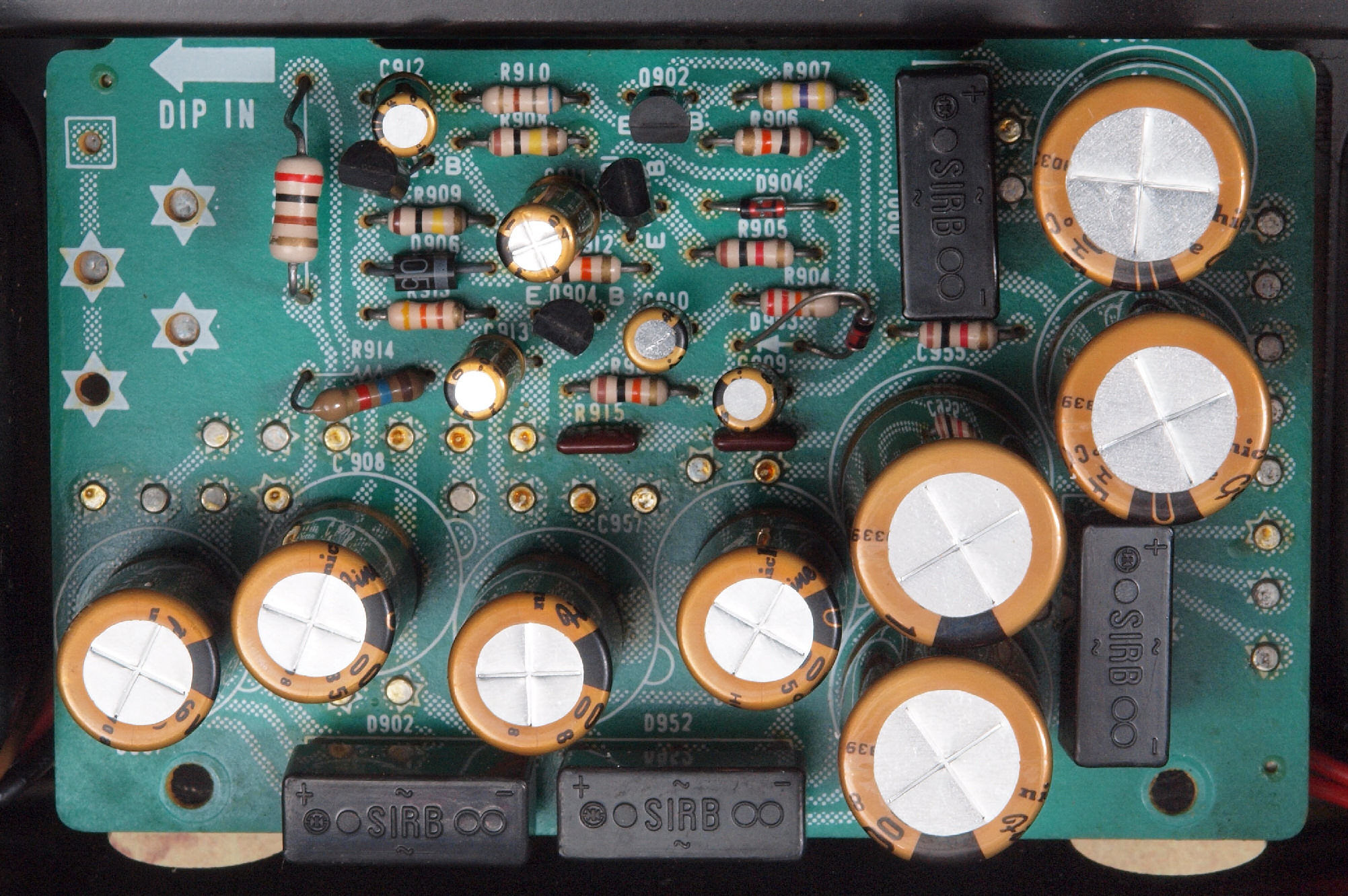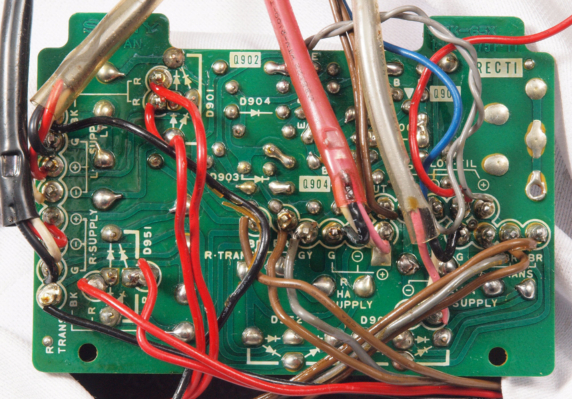 | C35. 修理中、HEAD−AMP定電源基板裏、洗浄後。 見た目は非常に綺麗だが、このままでは腐食する。 | ||||||||||||||||||||||||