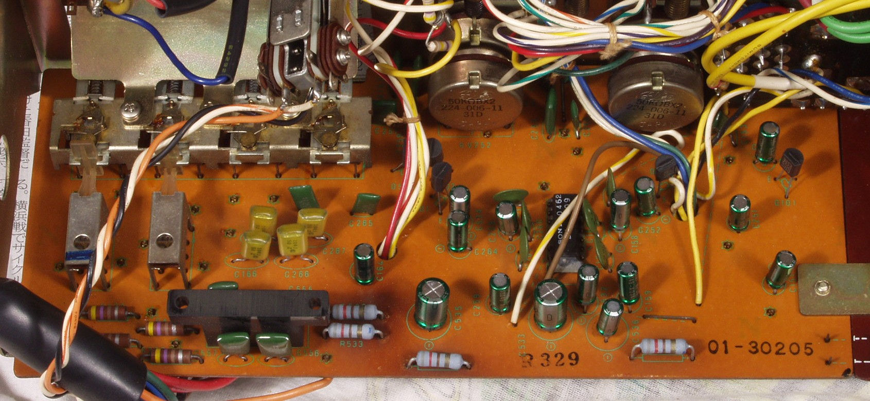 | C4B. 修理後 EQ−AMP&SW基板 電解コンデンサー7個、フイルムコンデンサー2個交換交換 | ||||||||||||||||||||||||||||||||||||||||||||||||||||||||||||||||||||