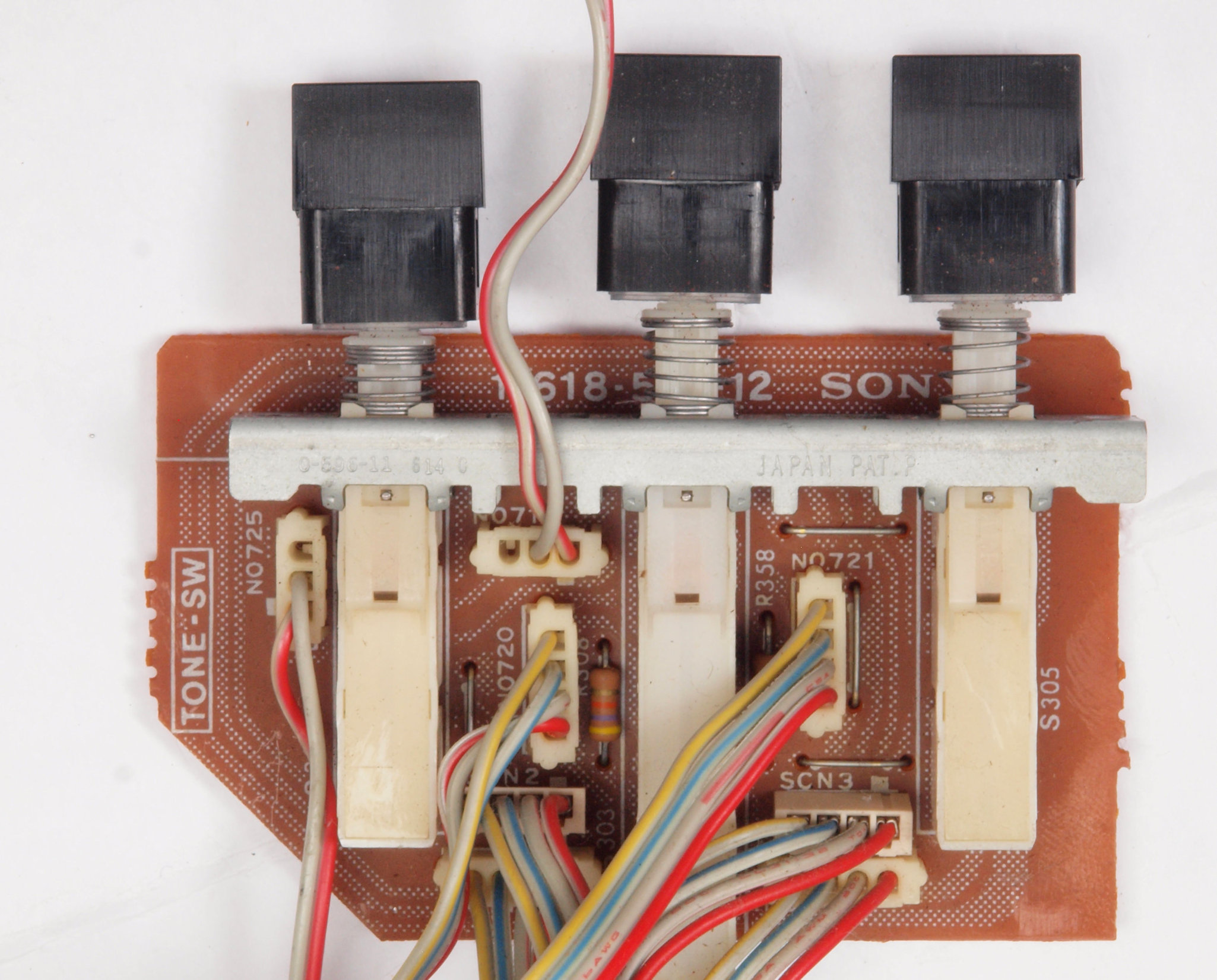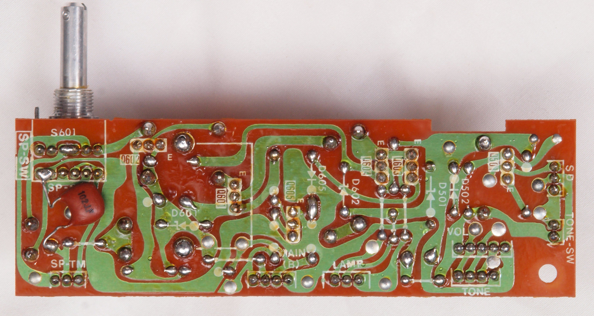 C63. 修理(半田補正)後 TONE−SW基板裏、  全ての半田をやり修す