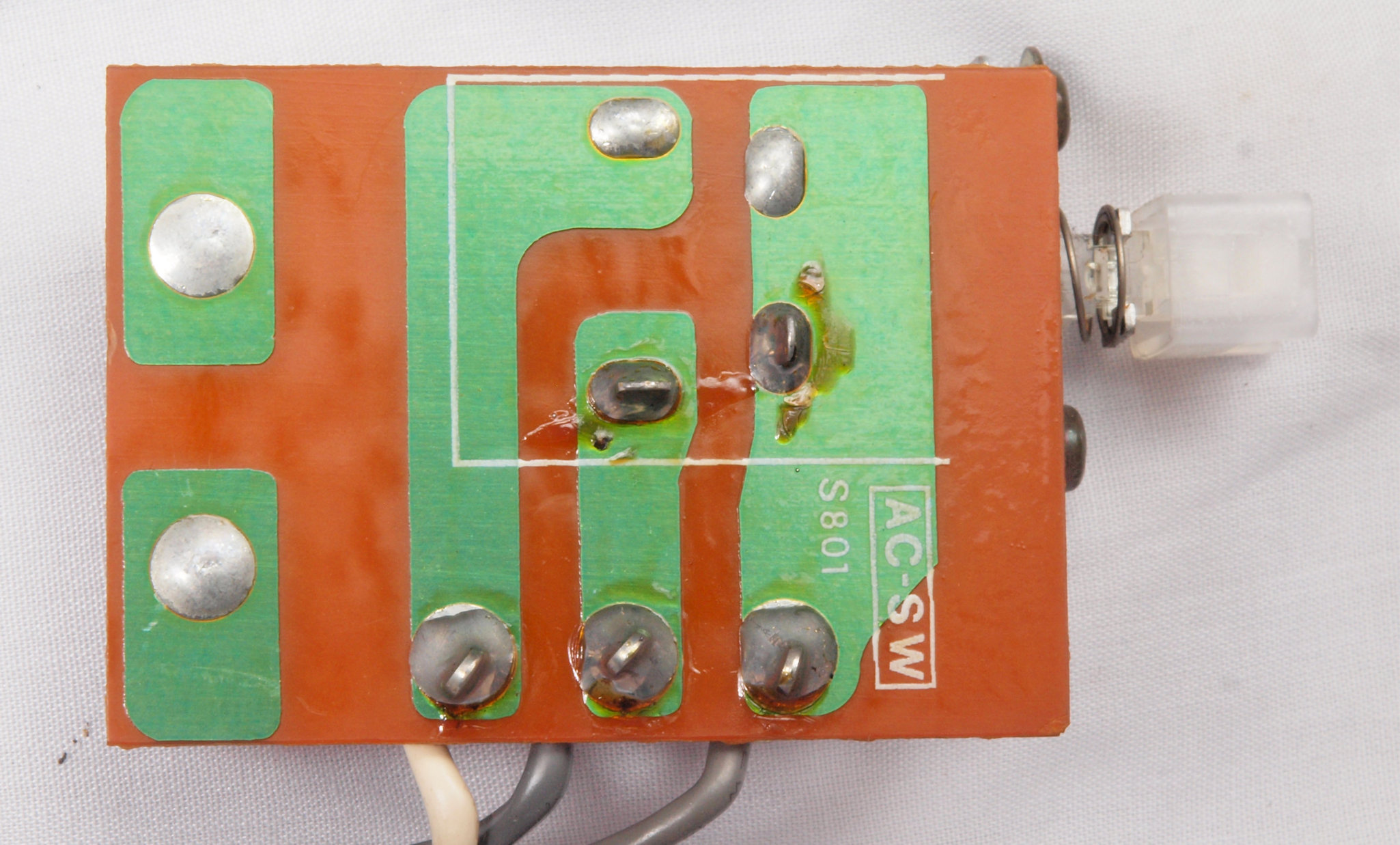 CJ1. 修理前 ヒューズ&コンセント基板裏。