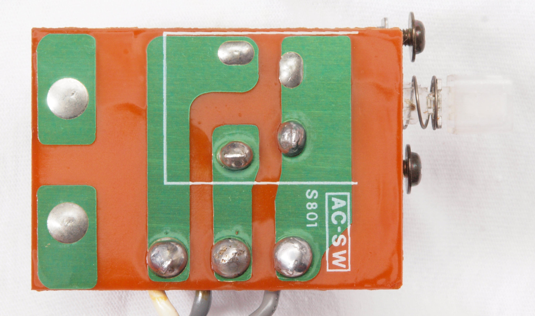 | CJ1. 修理前 ヒューズ&コンセント基板裏。 | ||||||||||||||||||||||||||||||||||||||