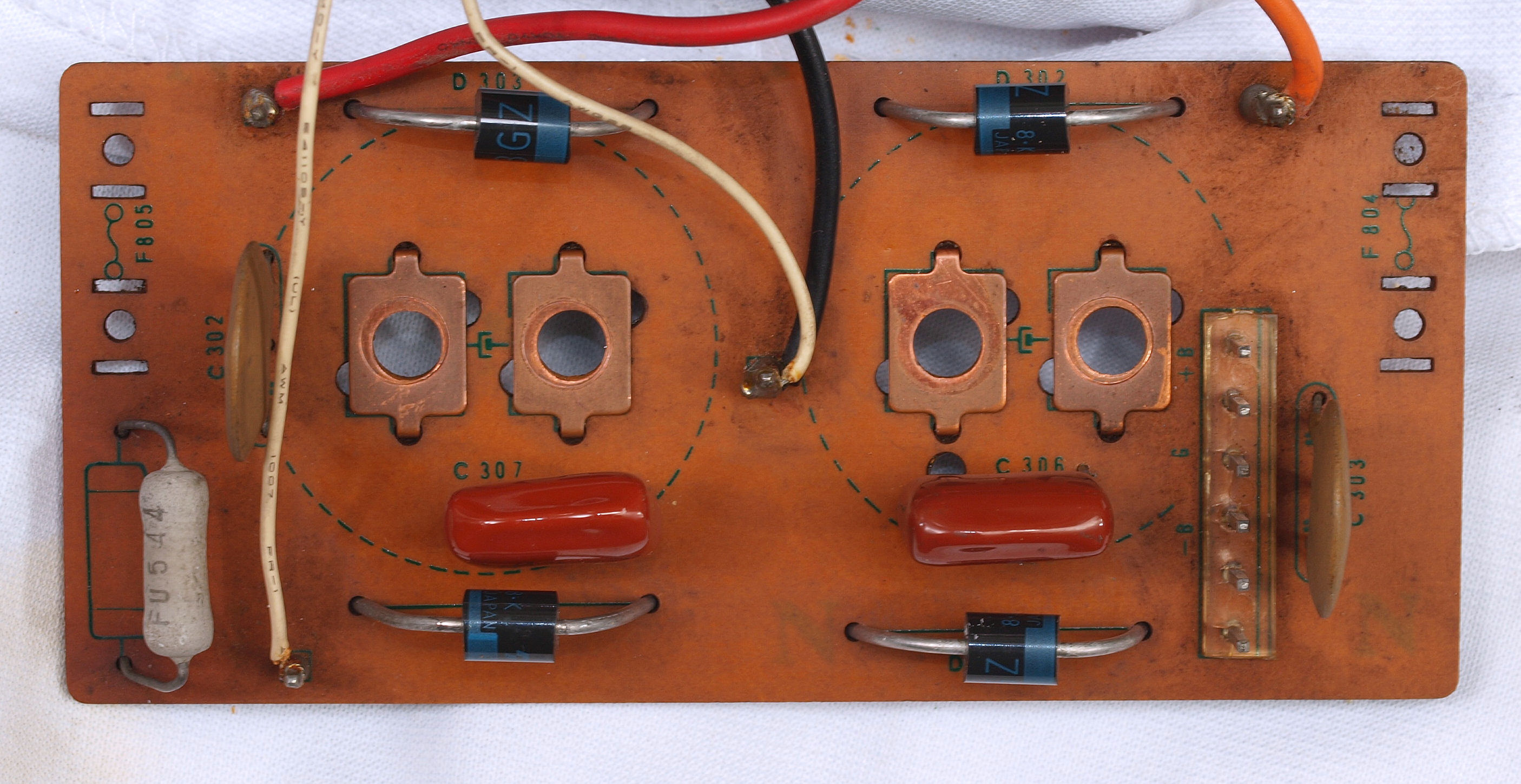 | C62. 修理後 電源整流基板、整流ダイオード4個交換、フイルムコンデンサー2個追加。 | ||||||||||||||||||||||||||||
