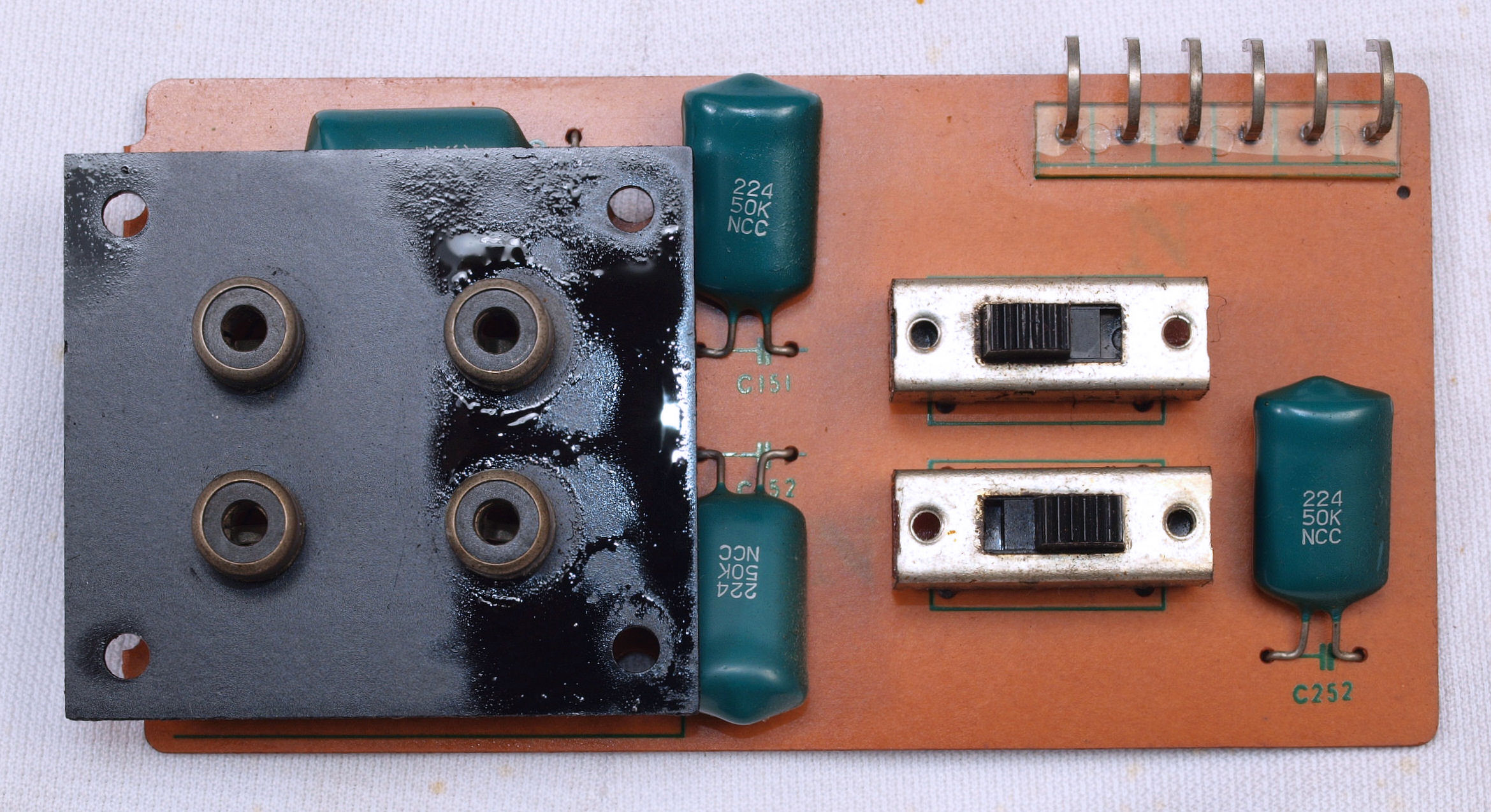 | C52. 修理後 入力RCA端子基板 フイルムコンデンサー4個交換。 | ||||||||||||||||||||||||||||
