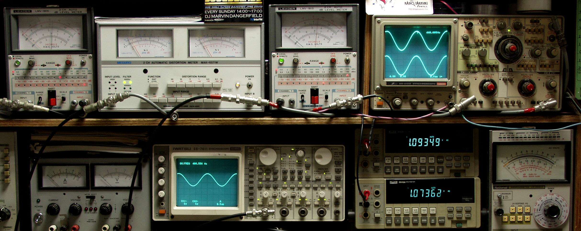 下段左端 オーディオ発振器より400HZ・1KHZの信号を出し(歪み率=約0.003%)これをAMPに入力し、SP出力を測定