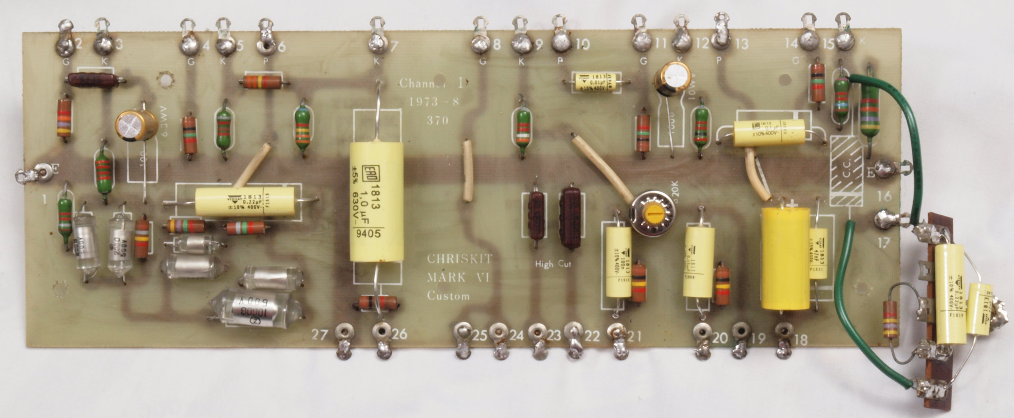 C22. 修理後 L側信号基板。 半固定VR1個、電解コンデンサー2個、フイルムコンデンサー10個交換。
