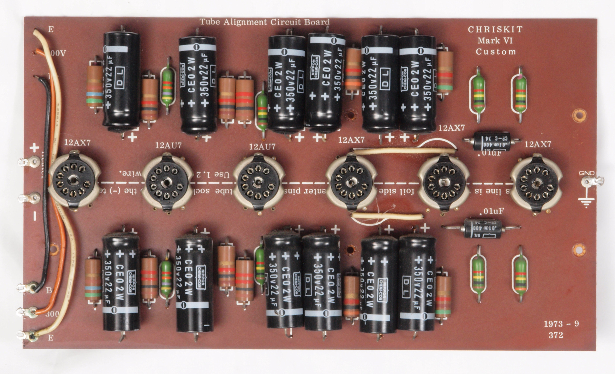 C32. 修理中 真空管基板。 真空管ソケットの固定には空気管等を挿して行う。