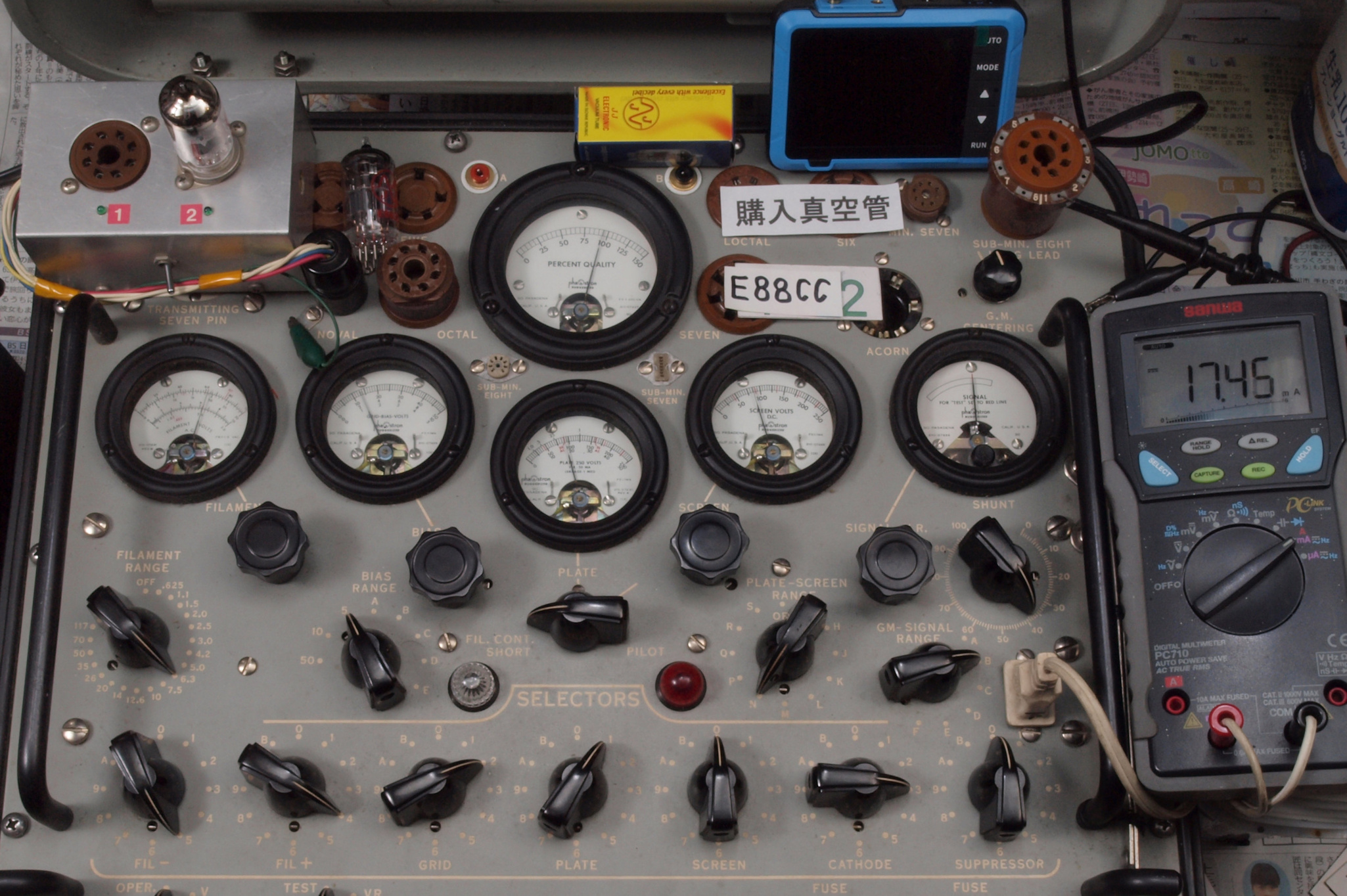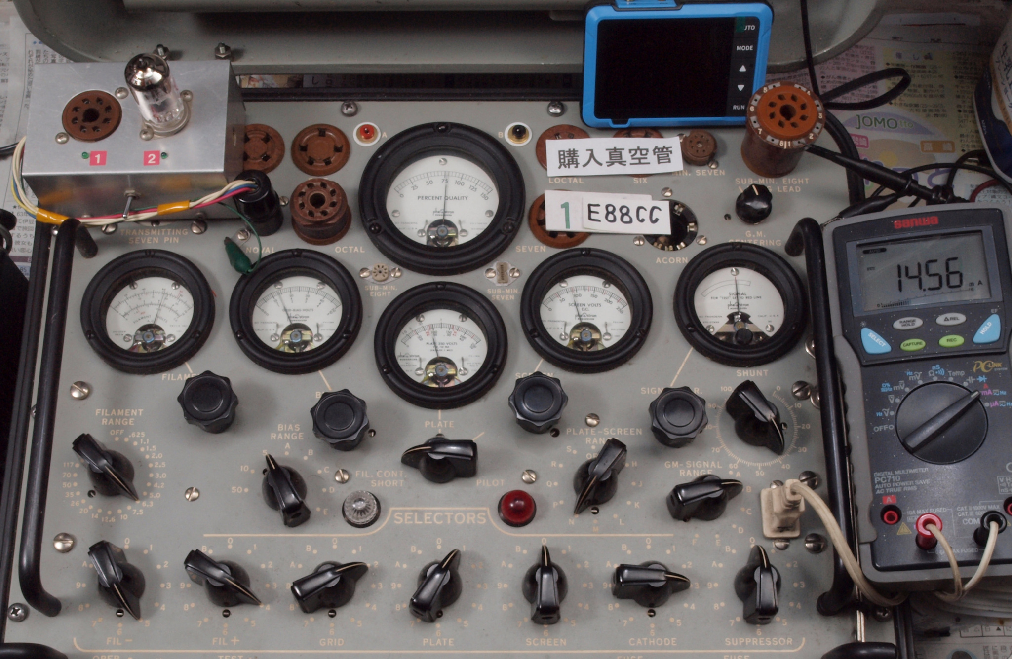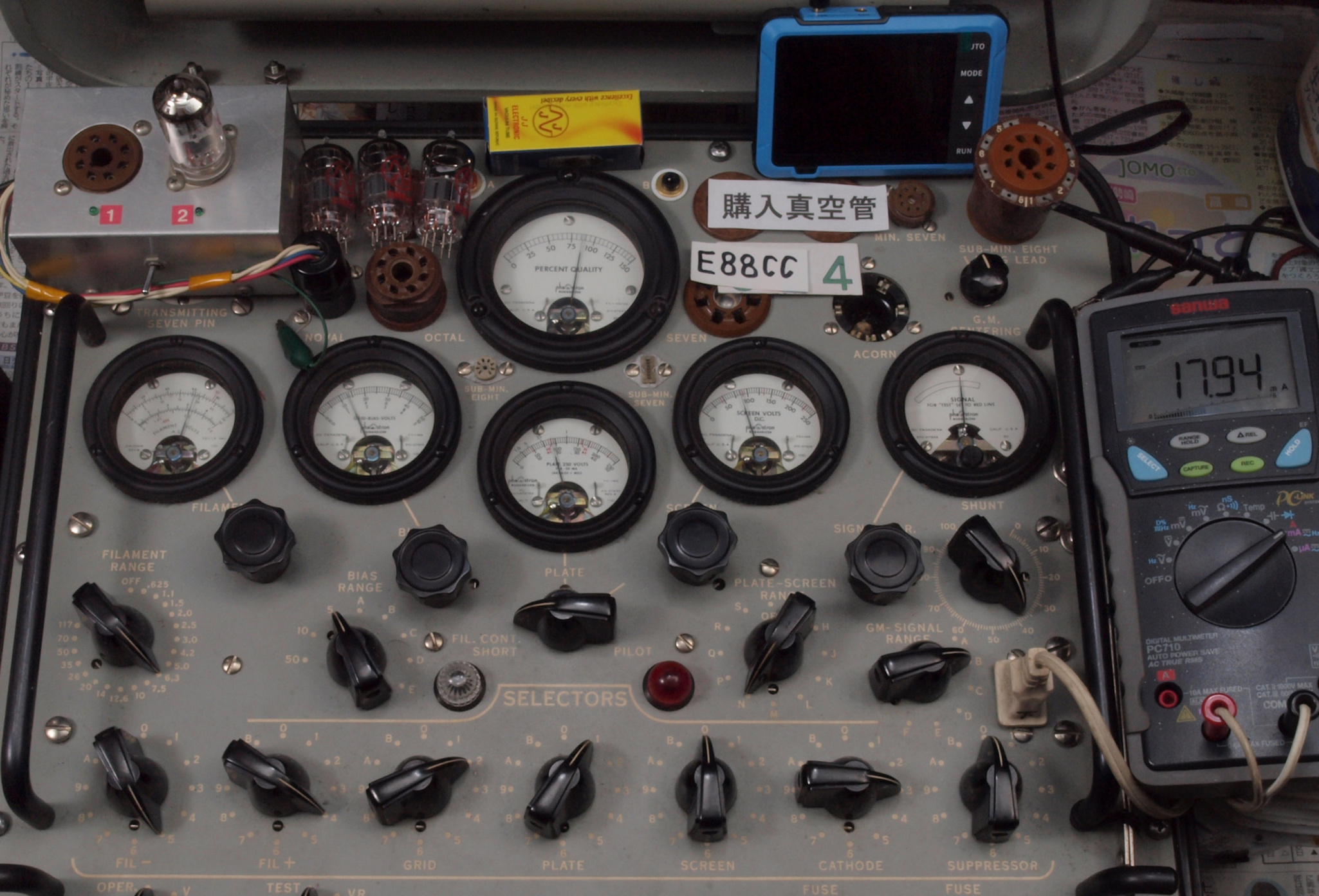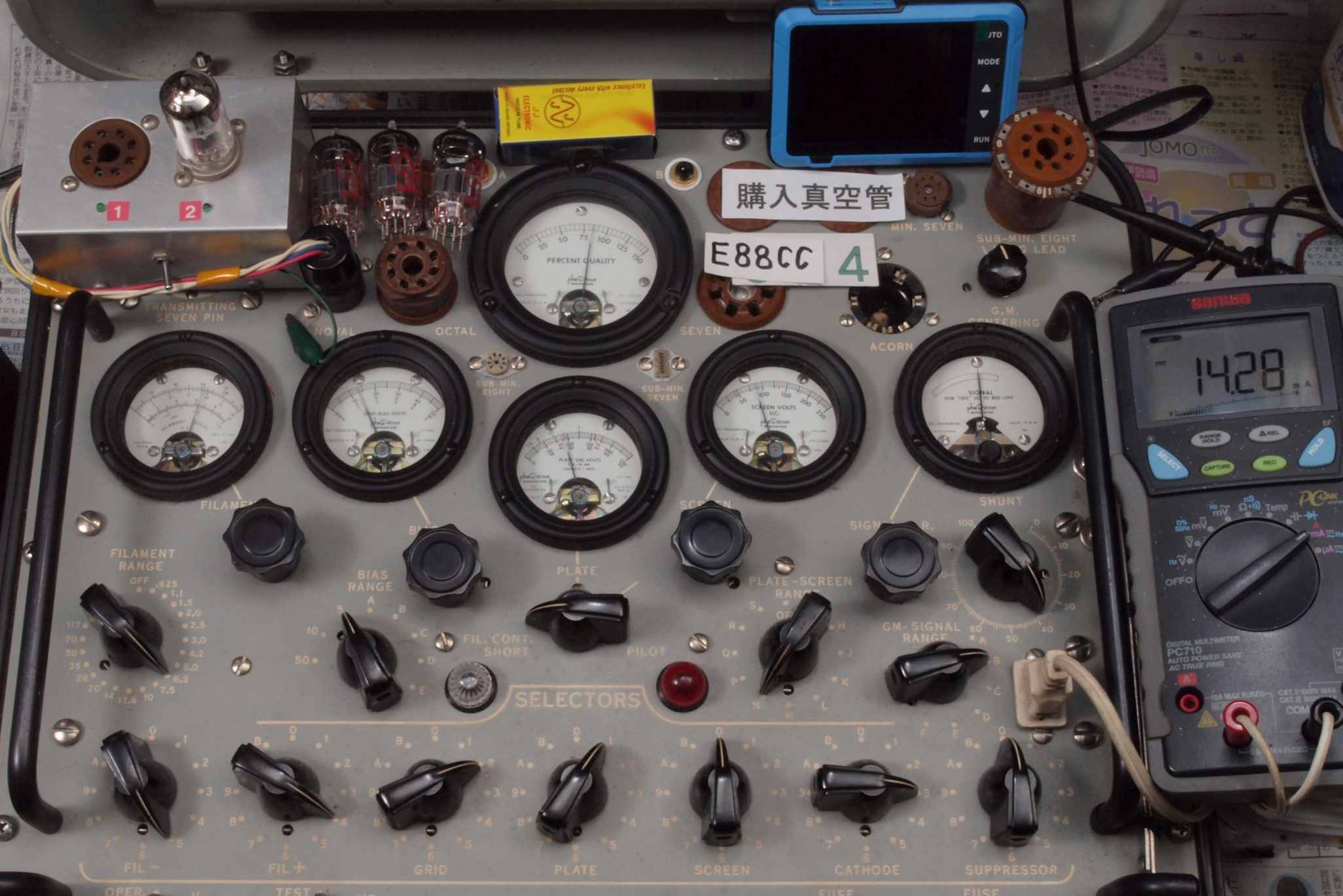 | V42. 購入真空管 E88CC−4本目ユニット2測定。 Gm測定=8500μmho、IP=14.28mA。 | ||||||||||||||||||||||||||||||||||||||