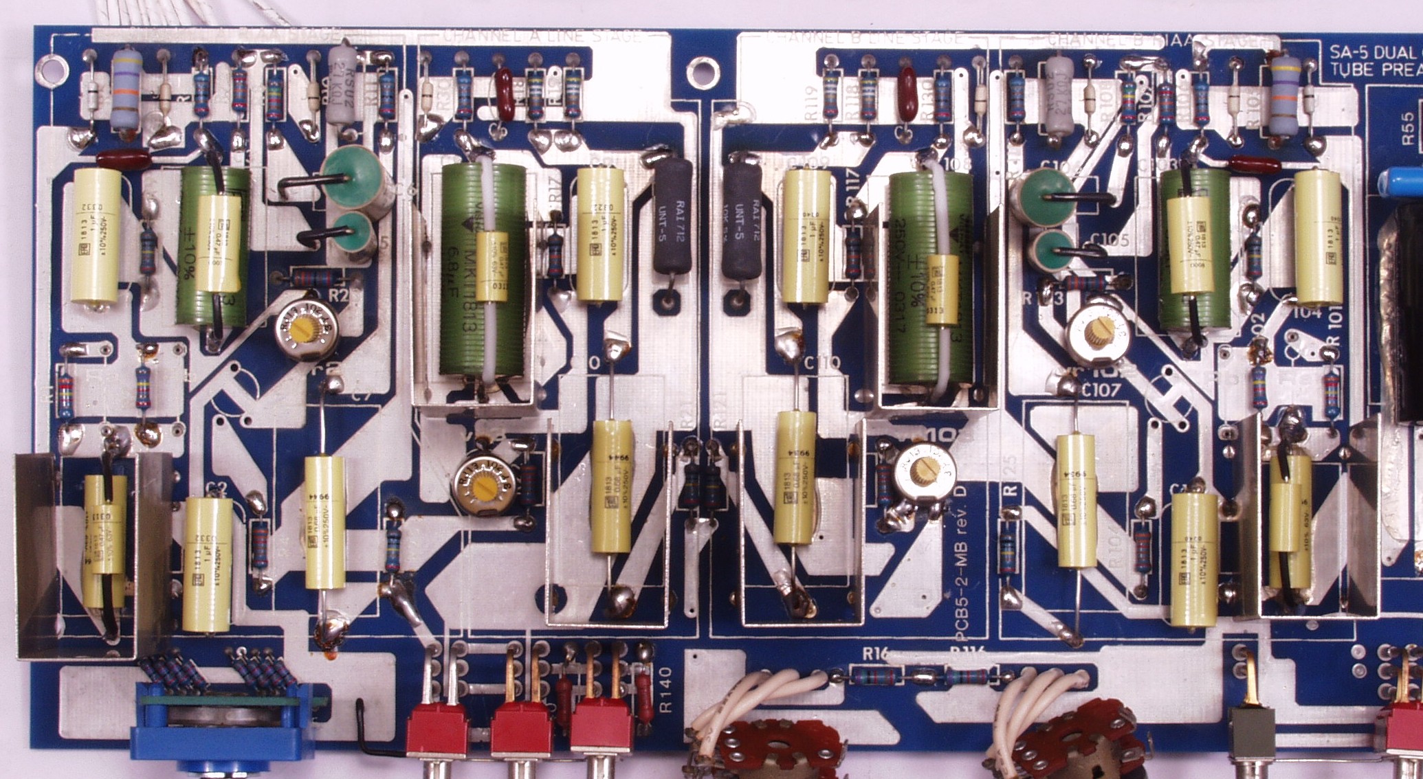 | C13. 修理後 AMP基板 半固定VR4個、フィルムコンデンサー22個交換 | ||||||||||||||||||||||||