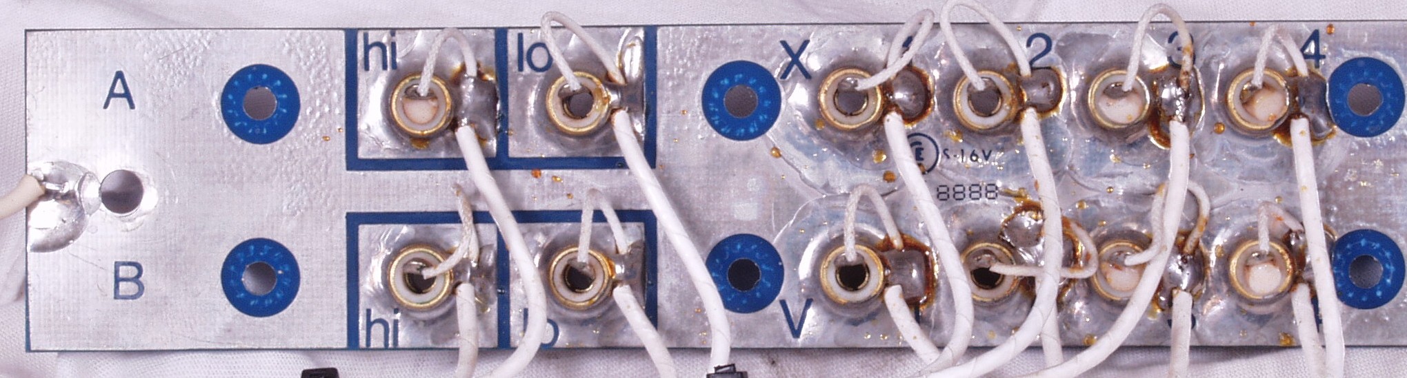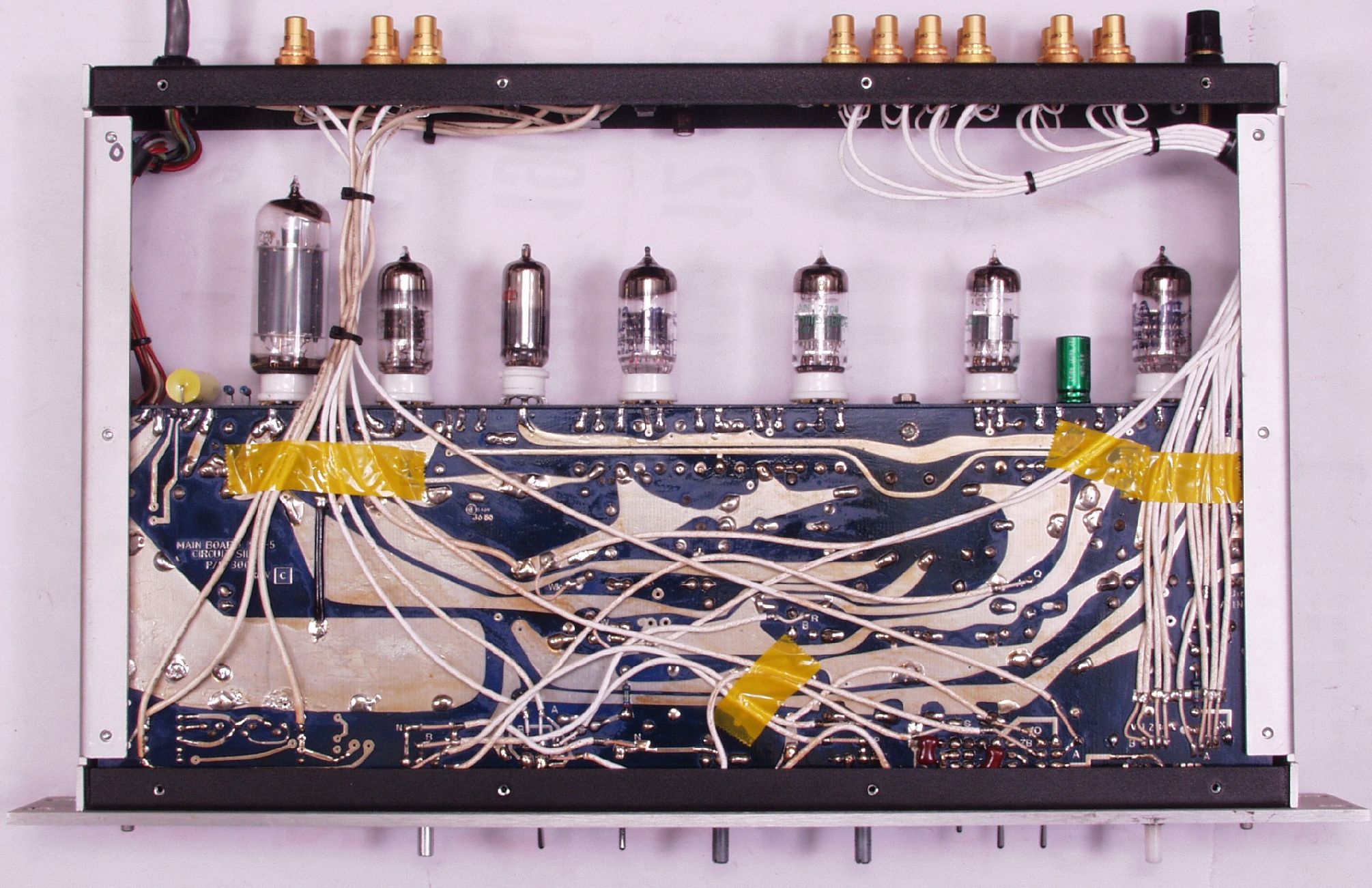 | A32. 点検中 入力RCA端子、内側に基板を使用し、内ネジタイプ、アースは別個に取っている 配線はテフロン絶縁線を使用! |