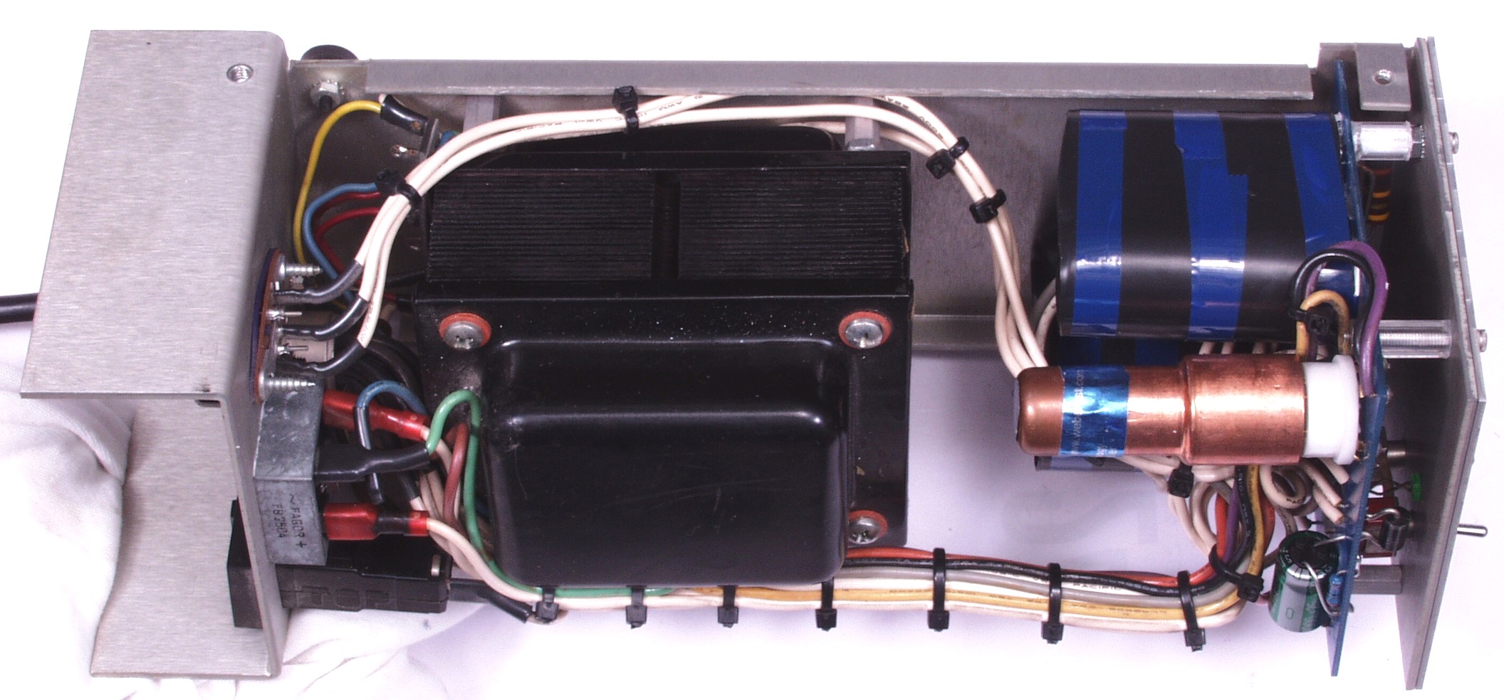 | C83. 修理前 電源部 右横から見る。 銅外装整流管が光ります! | ||||||||||||||||||||||||