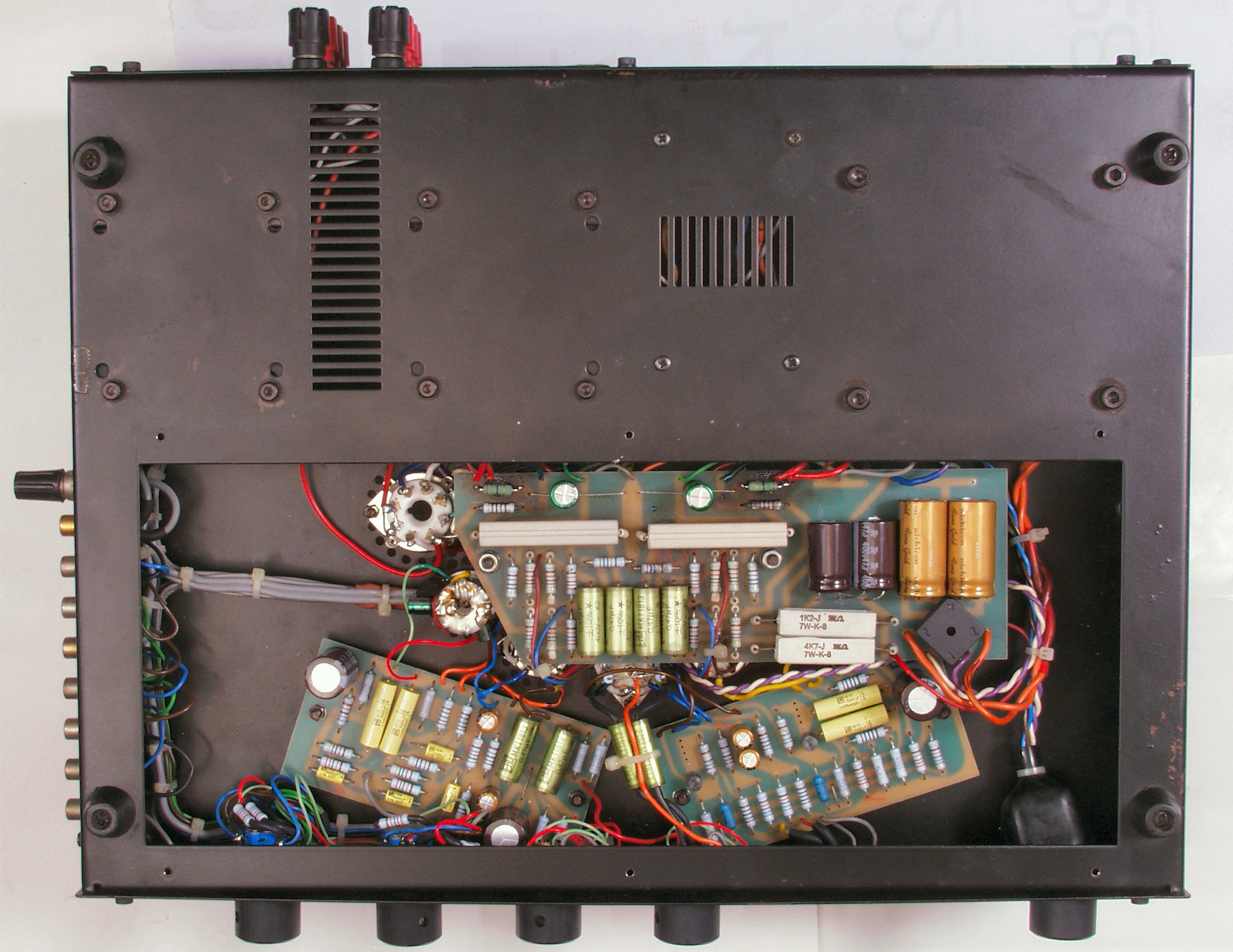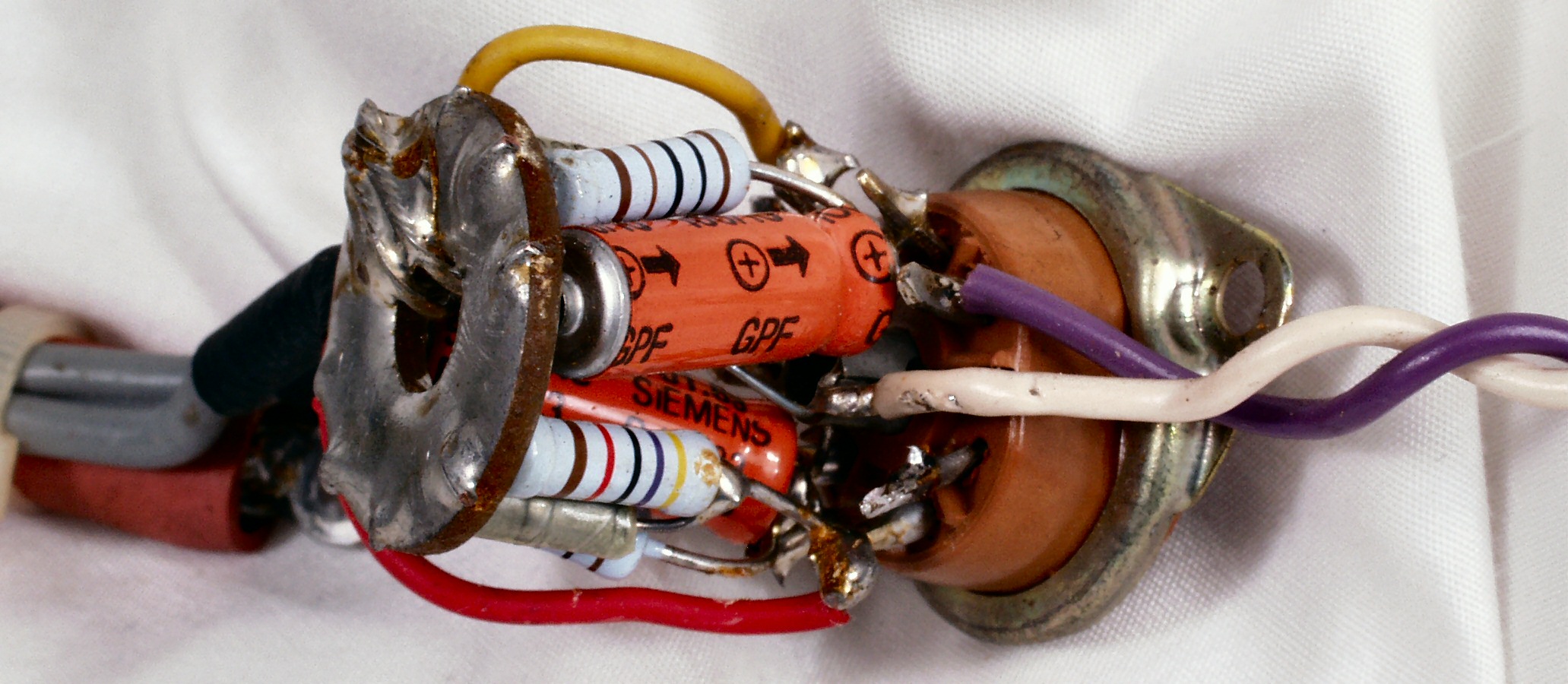 | C−1B. 修理後 ヒーター整流・メインAMP 抵抗4個、電解コンデンサー6個交換 |