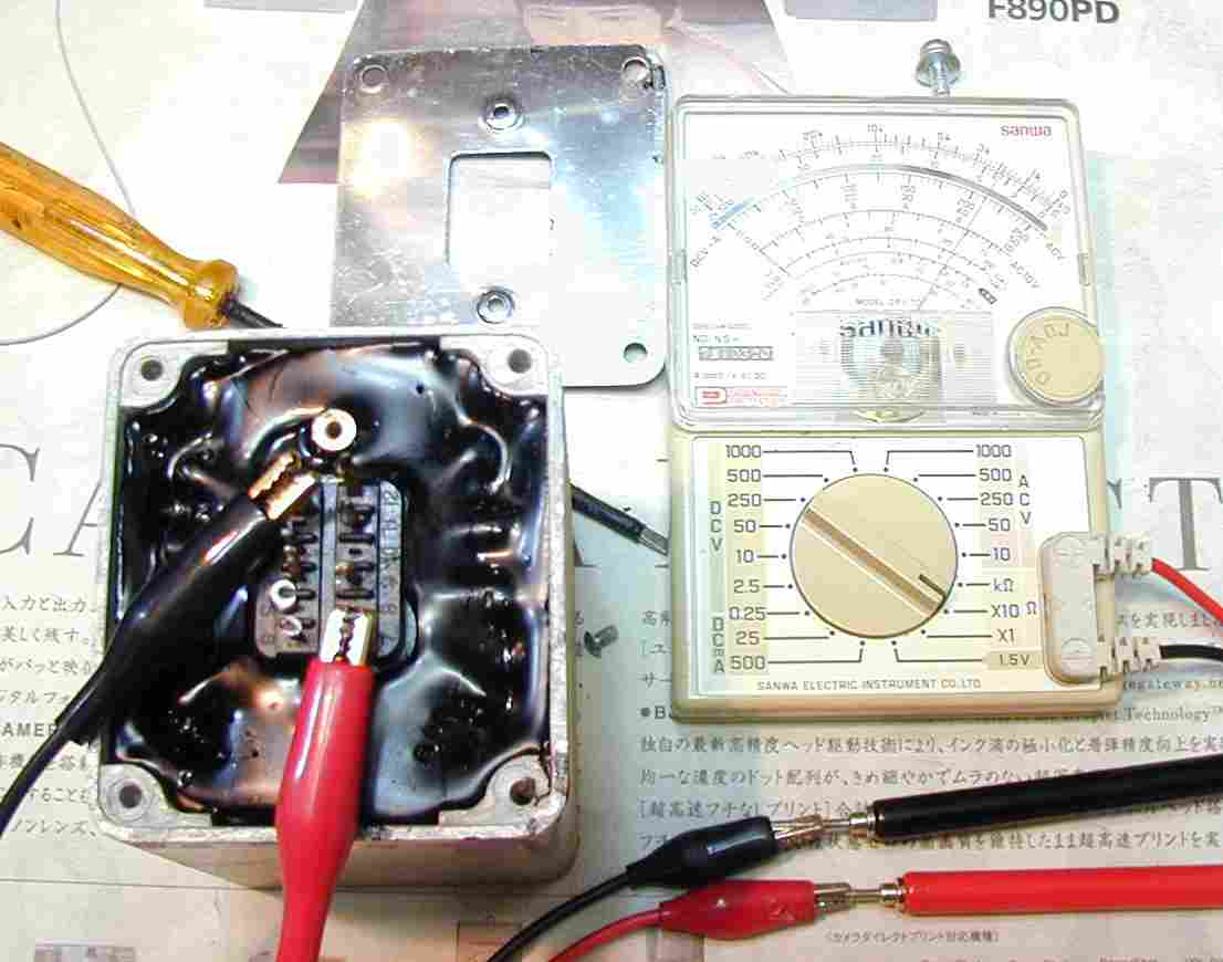 原因は出力トランスの1次/2次結合、水分でピッチもひび割れている。 |
