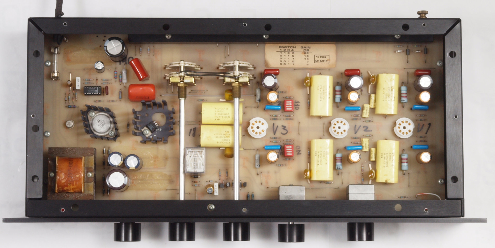 C92. 修理後 上から見る。 リレー1個、電解コンデンサー12個交換。